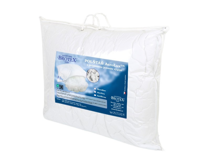 Výplň AeroLux zajišťuje optimální cirkulaci vzduchu, dlouhodobou tvarovou stálost a vysokou prodyšnost. Díky své měkkosti se polštář přirozeně přizpůsobí tvaru hlavy a krku, což ocení zejména osoby s citlivou krční páteří nebo bolestmi šíje.