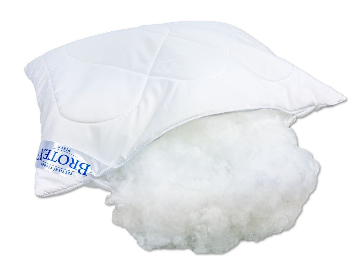 Povrchový korpus polštáře je vyroben ze 100% polyesteru, stejně jako samotná výplň, což zaručuje snadnou údržbu, vysokou hygienu a dlouhou životnost.