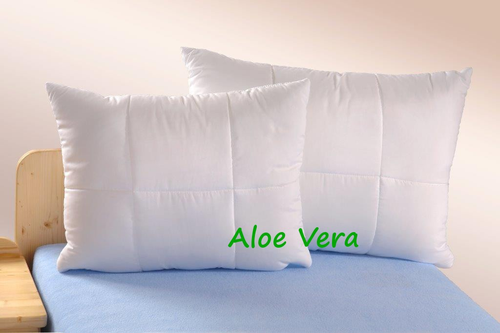 Tento polštář obsahuje tvarované kuličkové duté vlákno STANDARD, které je určeno pro výrobu protialergických polštářů. Kuličkové vlákno je uvnitř prošitého korpusu, který je prošitý ( látka, rouno, netkaná textilie ). Netkaná textilie je velmi důležitým materiálem u polštářů. Hlavní funkcí tohoto materiálu je zabránění spojení rouna s kuličkovým vláknem. Polštář je opatřen zipovým uzávěrem, pro možnost doplnění či odebrání části výplně dle potřeby zákazníka. .Povrchovým materiálem je 100% polyester - mikrovlákno s výtažky z rostliny Aloe Vera. Aloe Vera příznivě působí na lidskou pokožku, má schopnost zmírňovat bolesti kloubů a svalů. Během užívání postupně uvolňuje extrakty ze svých vláken, které mají výrazný antibakteriální efekt, tudíž bezpečně zaručí hubení bakterií a roztočů. Přispívá k uvolnění těla, relaxaci a ničím nerušenému klidnému spánku. Polštář je vhodný pro alergiky a astmatiky.