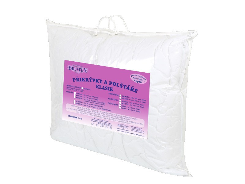 Polštáře Klasik obsahují kuličkové duté vlákno STANDARD, které je plně protialergické. Kuličkové vlákno je uvnitř prošitého korpusu, který je prošitý ( látka, rouno, netkaná textilie ). Netkaná textilie je velmi důležitým materiálem u polštářů. Hlavní funkcí tohoto materiálu je zabránění spojení rouna s kuličkovým vláknem. Polštář je opatřen zipovým uzávěrem, pro možnost doplnění či odebrání části výplně dle potřeby zákazníka.