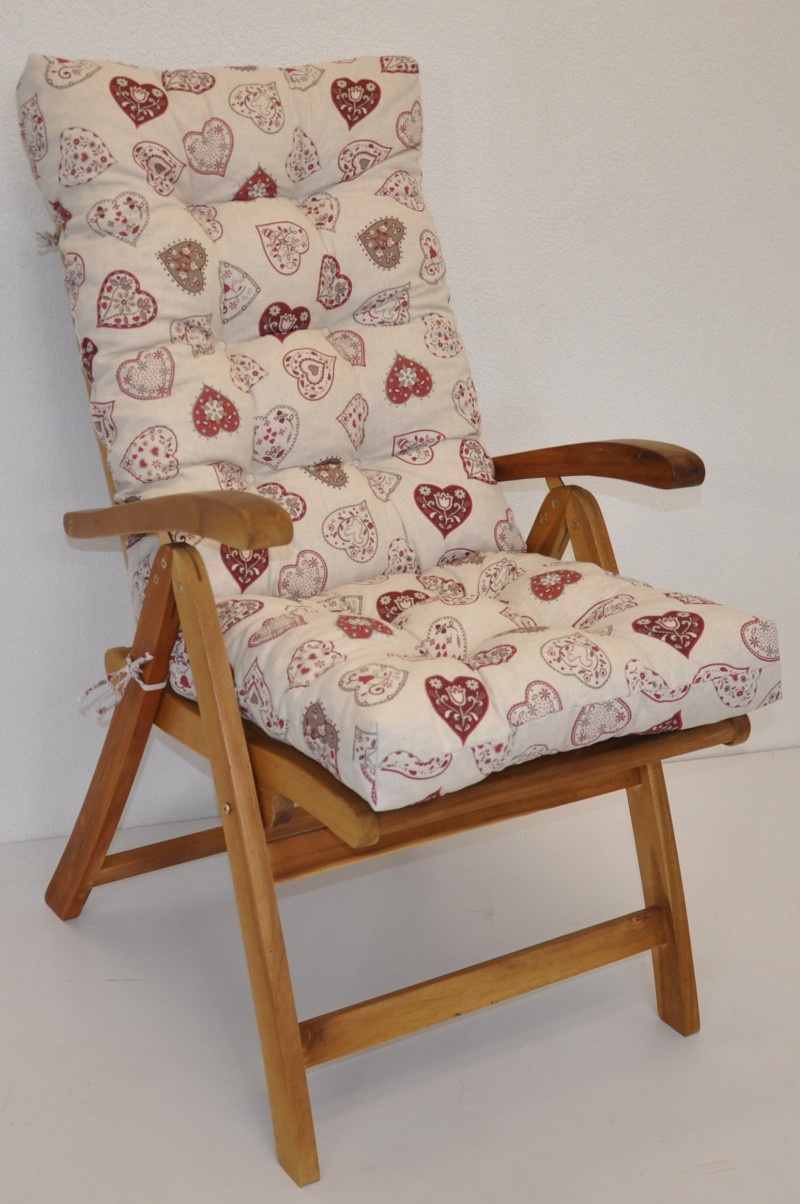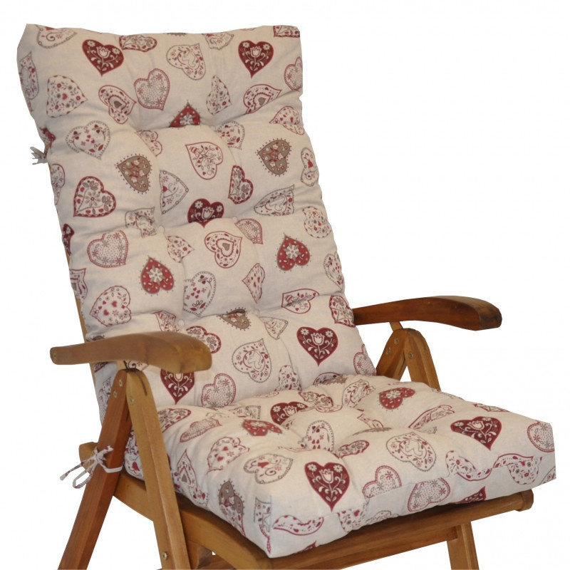 Polstr na teakové zahradní křeslo vysoké - látka motiv červená srdce