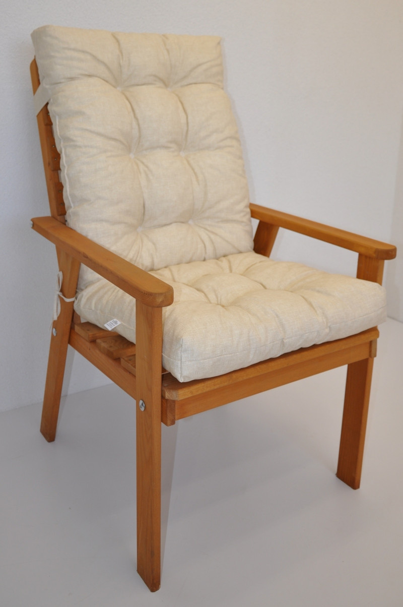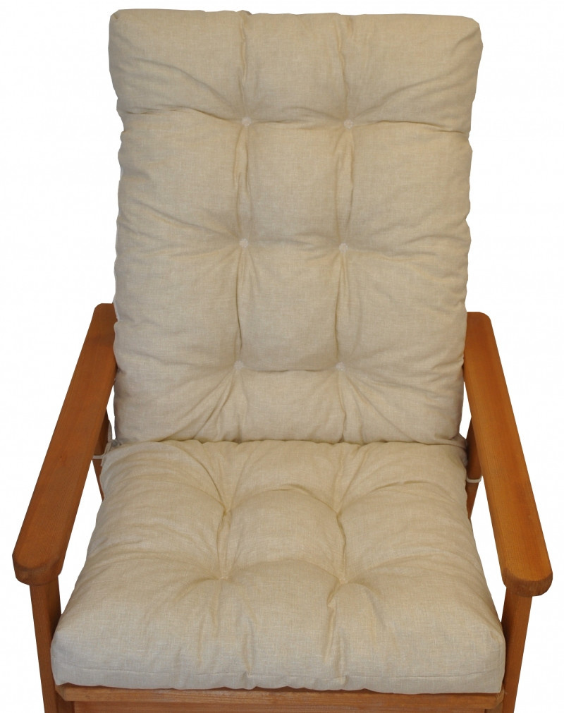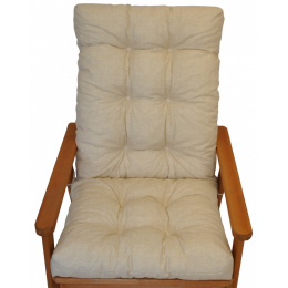 Samostatný polstr na dřevěné zahradní křeslo s vysokým opěradlem. | Univerzální polstr na zahradní křeslo s vysokým opěradlem. Polstr je vhodný na různá zahradní dřevěná křesla prodávaná na našem trhu. Šířka polstru je 50 cm. Celková délka polstru je 115 cm. Polstr je prošitý v místě dělení na sedací a opěradlovou část. Hloubka sedací části je 47 cm a výška opěradlové části je 68 cm. Polstr je plněný drceným molitanem. Pro výrobu polstru je použita kvalitní látka a standardem je vysoká kvalita zpracování. Polstr je vyrobený je v České republice z kvalitní látky a vyznačuje se vysokou kvalitou zpracování.