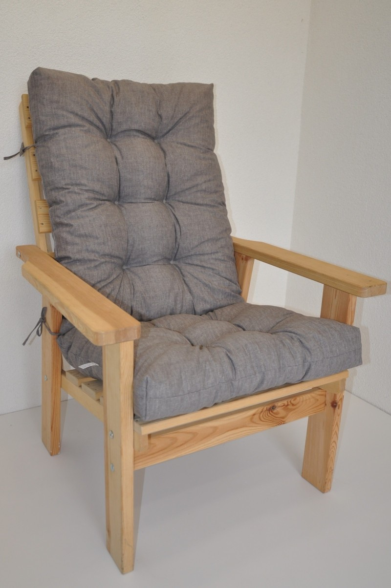 Polstr na zahradní křeslo vysoké široké - látka šedý melír