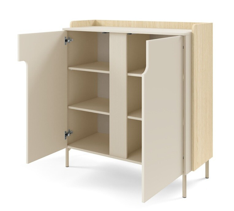 A POSITANO 8 komód praktikusság és esztétika figyelembevételével lett tervezve. Az ajtók könnyen nyílnak és záródnak, a belső tér optimálisan van elrendezve a maximális kihasználtság érdekében. A laminált felület karcálló és könnyen tisztítható, ami hosszú távon szép megjelenést biztosít.