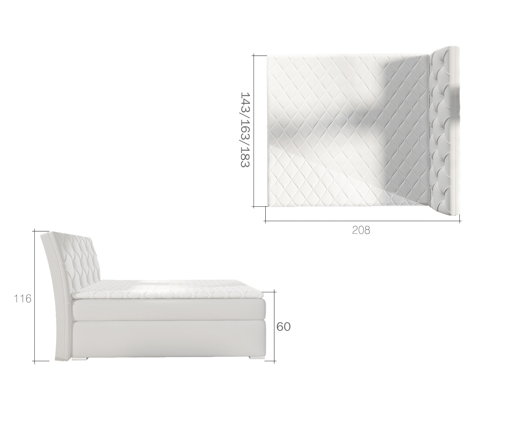 Postel se skládá z několika různých vrstev, kdy každá plní určitou funkci. Nejdůležitější částí postele je spodní rám, který tvoří dřevěný dělený box - úložný prostor postele. Na tomto dřevěném boxu je uložena kvalitní bonelová matrace. Na matraci je umístěna svrchní matrace neboli topper. Boxspring Bolivia se vyrábí ve třech rozměrech.