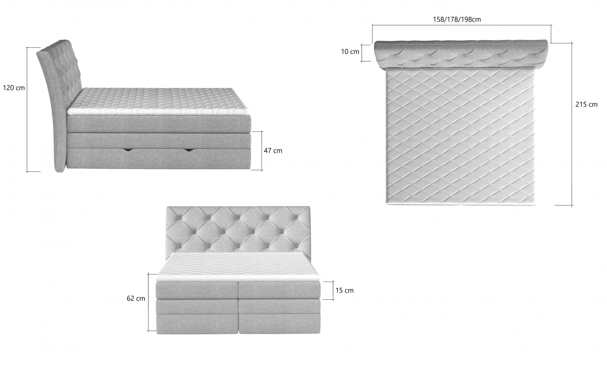 | Az ágy előlapjának magassága | 62 cm |