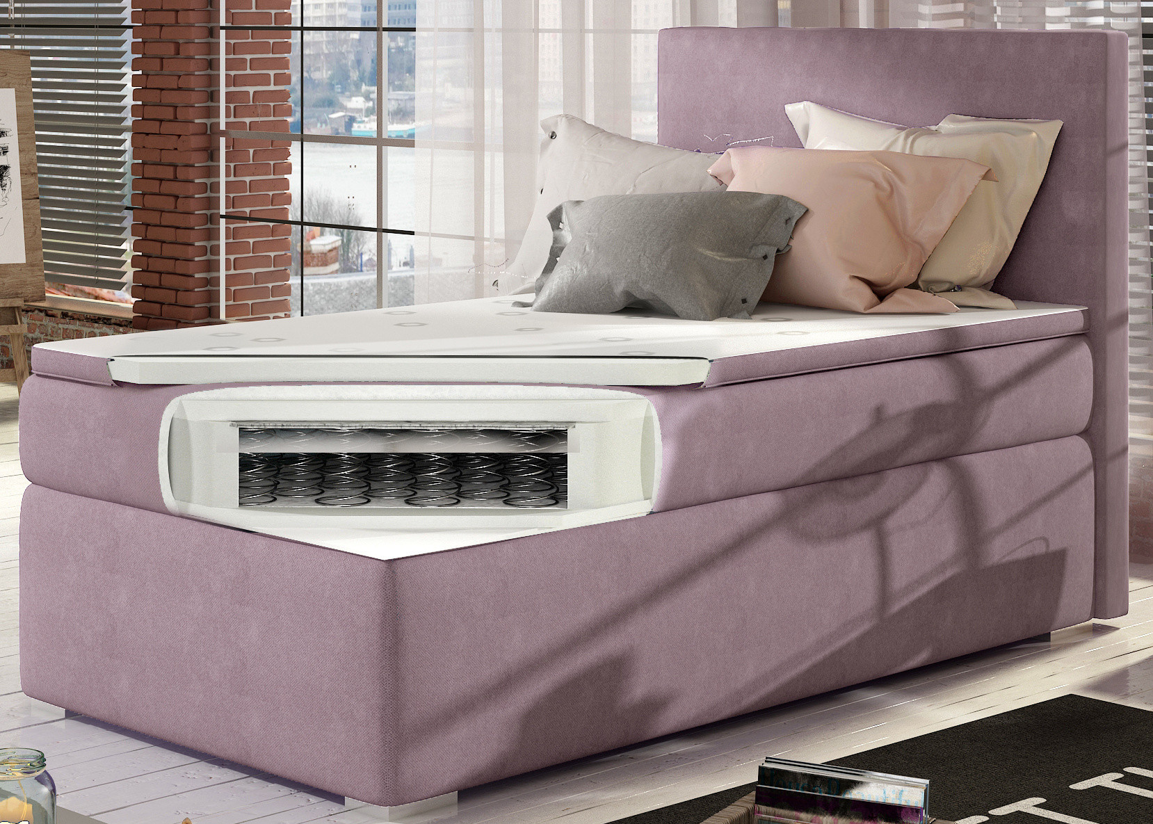 Postel se skládá z několika různých vrstev, kdy každá plní určitou funkci. Nejdůležitější částí postele je spodní rám, který tvoří dřevěný dělený box - úložný prostor postele. Na tomto dřevěném boxu je uložena kvalitní bonelová matrace. Na matraci je umístěna svrchní matrace neboli topper. Boxspring ROCKIE se vyrábí v jednom rozměro 90x200 cm.
