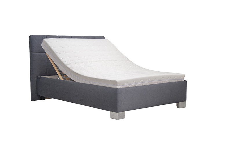 Moderní postel, která se hodí nejen do studentských nebo dětských pokojů, ale také do menších ložnic. Základem lůžka je 28 lamelový rošt s mechanickým polohováním hlavy a nohou (7 poloh hlavy, 1 poloha nohou), s nastavením tuhosti lamel a s popruhem proti přetížení. Rošt se skládá z 28 lamel uložených ve výkyvných kaučukových pouzdrech. Snadnější manipulaci při otevírání úložného prostoru zajišťují plynové písty. Součástí postele je kvalitní matrace Stela vyrobená z kvalitních pěn, bez použití lepidla. Její jádro je složeno z desek polyuretanových pěn o nižší a vyšší tuhosti, což umožňuje výběr měkčí a tvrdší strany matrace. Výška matrace v potahu je 15 cm a doporučená nostnost je 110 kg. Součástí postele je úložný prostor, který se otevírá od nohou (pomocí plynových pístů). Tuto postel nabízíme také v dalších rozměrech a dalším barevném provedení. Postel je možné zakoupit také bez matrace (v případě zájmu nás prosím kontakujte).