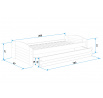 Postel Lizzie je vyrobena z borovicového dřeva, které je barveno a lakováno vodou ředitelným lakem, který je vhodný na dětský nábytek a vyhovuje normám o nezávadnosti. Panely Na bocích postele jsou vyrobeny z kvalitní MDF desky. Součástí postele je praktický úložný prostor na kolečkách, který můžete využít např. na lůžkoviny, rošt a pěnová matrace s doporučenou nosností do 70 kg. Tloušťka matrace je 7cm. Plocha pro spaní je 90x200 cm. Postel je dodávána v demontu a součástí je montážní plánek včetně všech potřebných spojovacích materiálů. Postel nabízíme ve dvou barevných provedeních a také s přistýlkou. Vyobrazené doplňky a dekorace nejsou v ceně.
