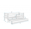 Dětská postel Norbert II je určena pro ty, kteří pro své dítě hledají funkčnost, pohodlí a kvalitu. Postel je vyrobena z borovicového dřeva. Její stabilní konstrukce, zaoblené hrany a zábrana, která je v ceně postele, zajišťují bezpečnost a pohodlí dítěte. Zábranu si můžete podle potřeby umístit na pravou, nebo levou stranu postele. Součástí postele je také praktická přistýlka s matrací, kterou můžete využít pro druhé dítě, nebo když u Vašeho dítěte bude chtít přespat kamarád/ka. Obě části postele mají rošt a pěnovou matraci se snímatelným potahem. Tloušťka matrace je 7cm. Plocha pro spaní je 90x200 cm (vrchní část) a 80x190 cm (přistýlka). Postel je dodávána v demontu a součástí je montážní plánek včetně všech potřebných spojovacích materiálů. Vyobrazené dekorace nejsou v ceně.