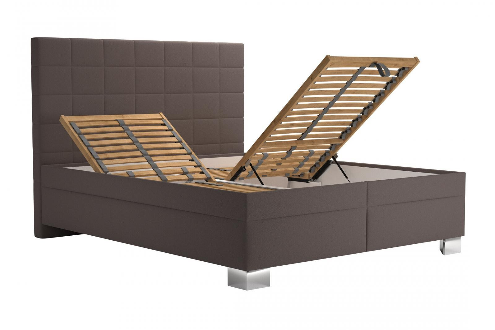 Úložný prostor lůžka se otevírá za pomoci plynových pístů od nohou postele.