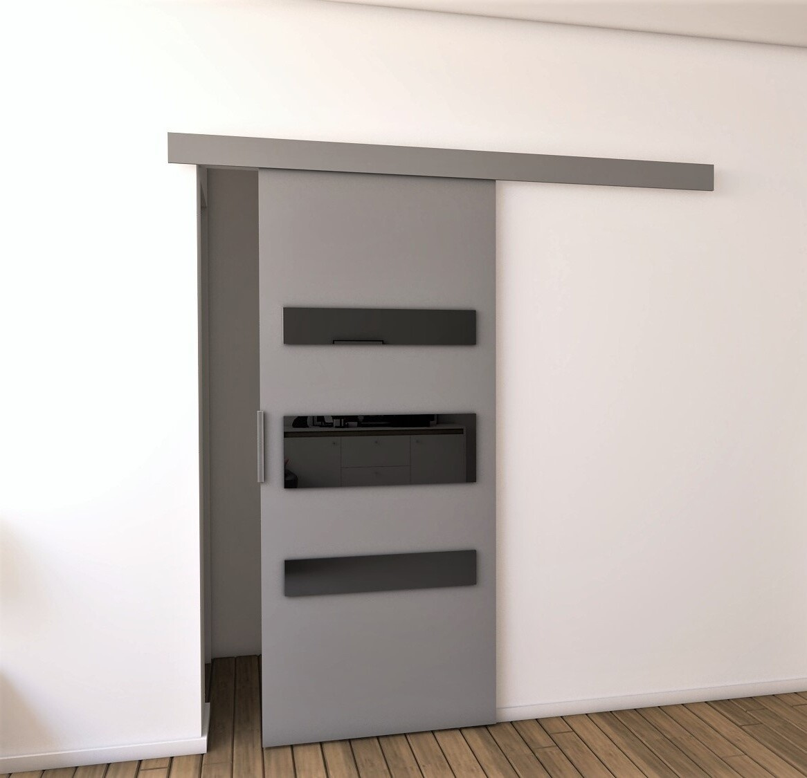 - Možnost dokoupení samozavíracího zařízení pro posuvné dveře, které zabrzdí dveře a jemně je dovře do krajní polohy a zabraňuje poškození dveří při silném posunu