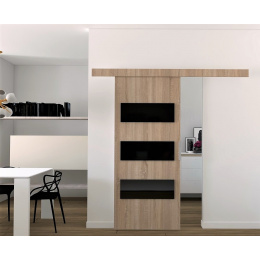 - Možnost dokoupení samozavíracího zařízení pro posuvné dveře, které zabrzdí dveře a jemně je dovře do krajní polohy a zabraňuje poškození dveří při silném posunu