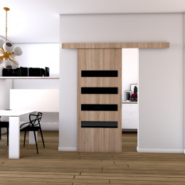 - Možnost dokoupení samozavíracího zařízení pro posuvné dveře, které zabrzdí dveře a jemně je dovře do krajní polohy a zabraňuje poškození dveří při silném posunu