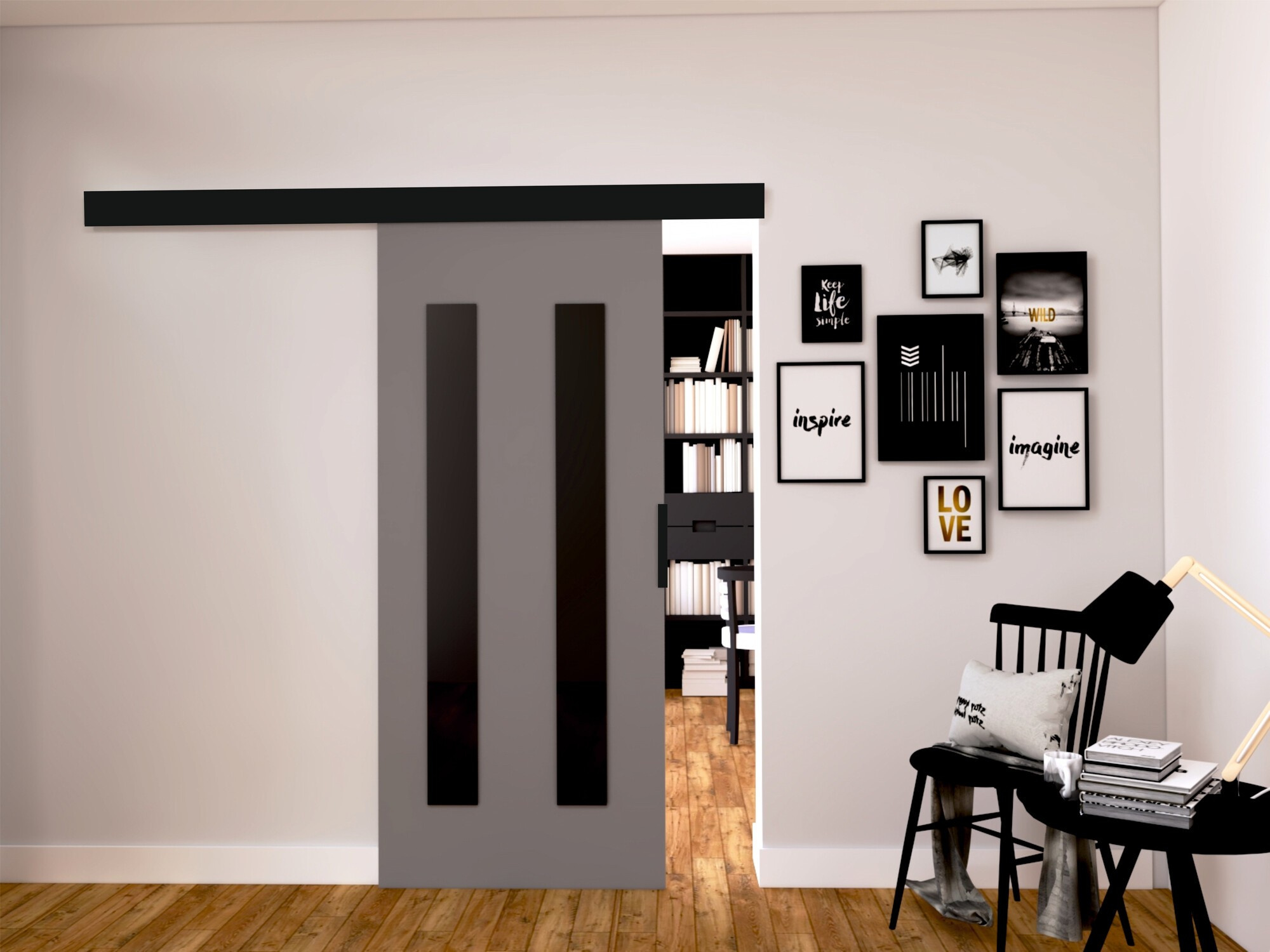 Posuvné dveře STANDART MIX H70, Šedá/Černá