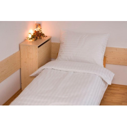 Tkanina atlas grádl je charakteristické vodorovnými 2cm proužky, které jsou vytvořeny vlastním tkaním. Ložní povlečení je vyrobeno z tkaniny 100% bavlna, česané příze o gramáži 145g/m2. Tkanina atlas grádl je charakteristická vysokou pevností a odolností při údržbě. Atlas grádl je tkanina, která má podélné pruhy a je vhodná do náročných hotelových provozů.