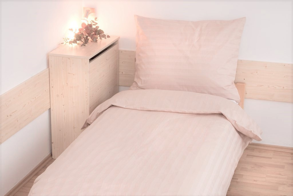 Tkanina atlas grádl je charakteristické vodorovnými 2cm proužky, které jsou vytvořeny vlastním tkaním. Ložní povlečení je vyrobeno z tkaniny 100% bavlna, česané příze o gramáži 145g/m2. Tkanina atlas grádl je charakteristická vysokou pevností a odolností při údržbě. Atlas grádl je tkanina, která má podélné pruhy a je vhodná do náročných hotelových provozů.