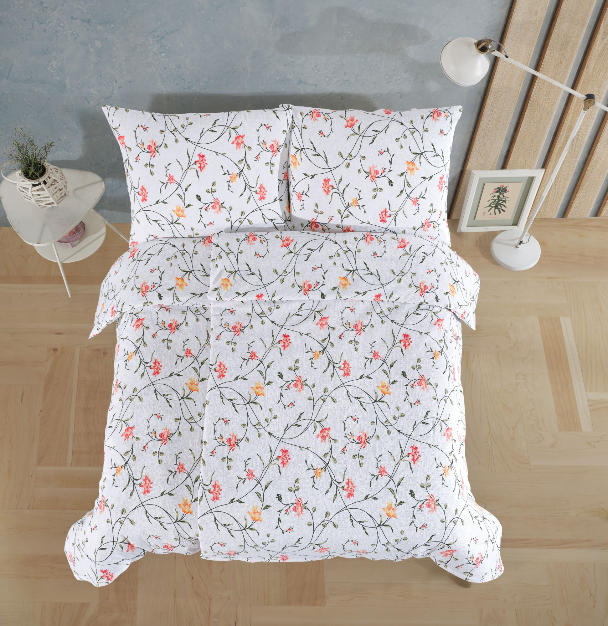 Povlečení je vyrobeno z velmi jemné 100% bavlněné tkaniny o plošné hmotnosti tkaniny 130g/m2. Krepování je vytvořeno pomocí speciální úpravy. Díky tomuto krepování se povlečení nemusí žehlit. Tkanina má vysokou hustotu velmi jemných přízí a pro tyto své vlastnosti je velice jemná a příjemná na omak. Ložní povlečení je vyrobeno s rozměrovou rezervou pro vysrážení po vyprání. Povlečení je vyrobeno v ČR s oblíbeným zipovým uzávěrem.