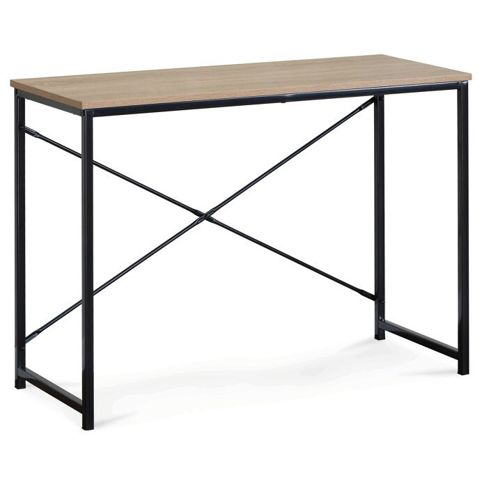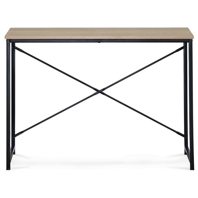 Pracovní stůl GD-504 OAK nabízí praktické řešení pro domácí i kancelářské prostředí. Deska stolu je vyrobena z MDF s dekorativním povrchem v odstínu divokého dubu, který je odolný a snadno se udržuje. Stabilní kovová podnož v černé barvě zajišťuje pevnost a dlouhou životnost celé konstrukce. Kompaktní rozměry 100x40x70 cm umožňují efektivní využití prostoru i v menších místnostech. Celková pevnost a stabilita stolu podporují pohodlnou práci s dostatečným prostorem pro notebook či psací potřeby.
