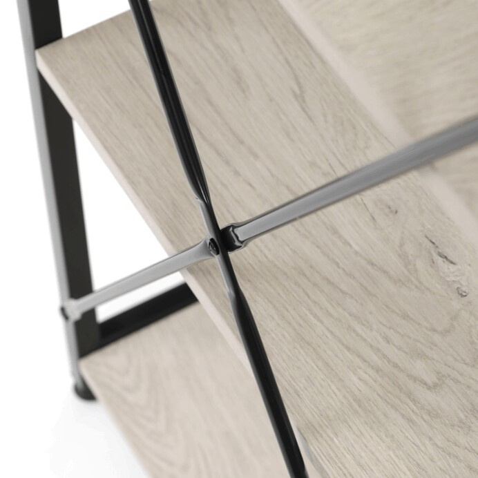 Pracovní stůl značky Autronic v industriálním stylu je skvělou volbou pro moderní kanceláře i domácí pracovny. Kombinace běleného dubu a černé kovové konstrukce vytváří atraktivní a odolný design. Stůl nabízí praktický úložný prostor díky čtyřem přídavným policím, které poskytují dostatek místa pro knihy, dokumenty nebo dekorace. Matná povrchová úprava desky z MDF zajistí snadnou údržbu a elegantní vzhled. Tento funkční a stylový kus nábytku se skvěle hodí do interiéru, kde oceníte praktičnost a moderní vzhled.Rozměr police: 48 x 24,5 cm. Celková výška s policí je 122 cm.