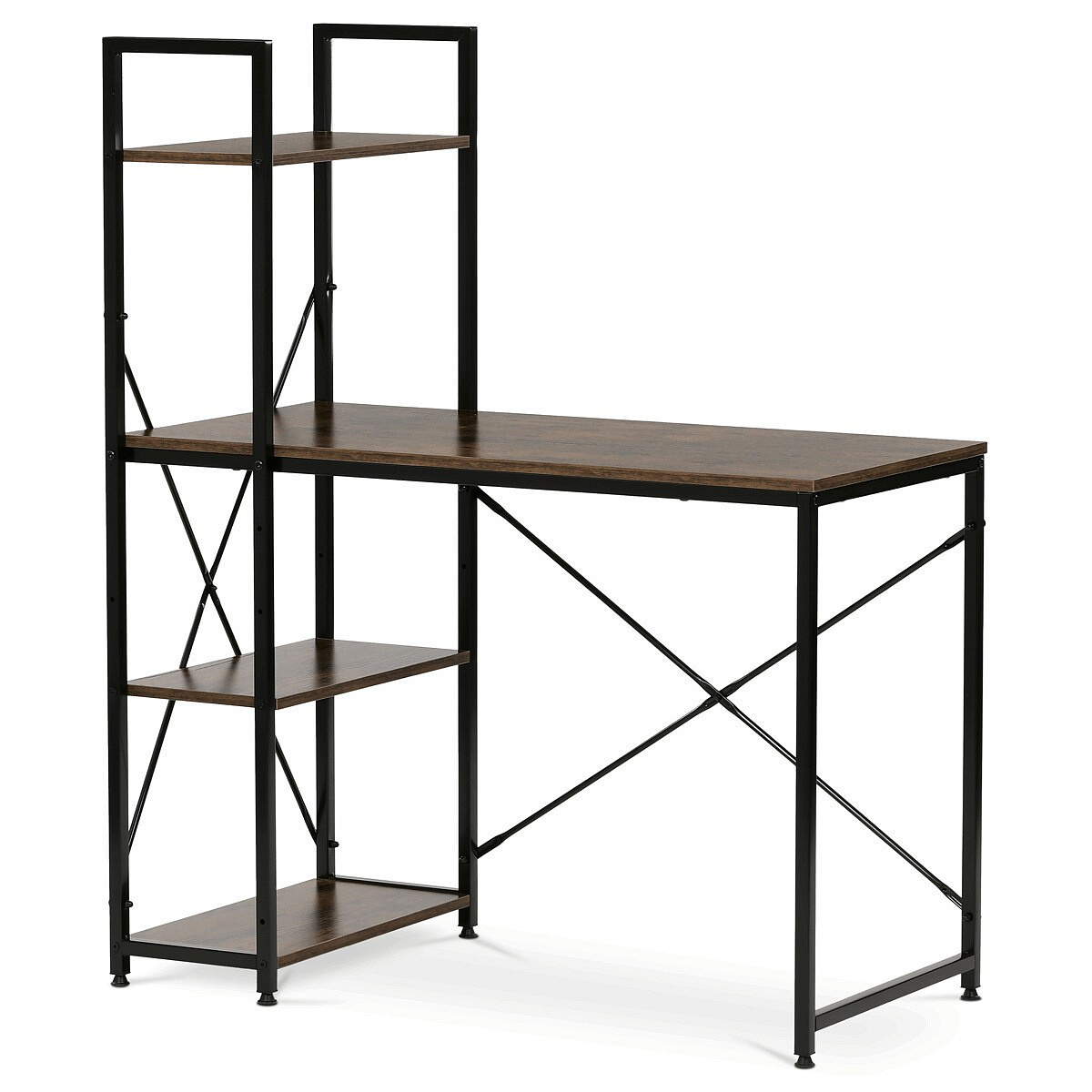 Pracovní stůl značky Autronic v industriálním stylu je skvělou volbou pro moderní kanceláře i domácí pracovny. Kombinace hnědého dekoru v provedení starého dřeva a černé kovové konstrukce vytváří atraktivní a odolný design. Stůl nabízí praktický úložný prostor díky čtyřem přídavným policím, které poskytují dostatek místa pro knihy, dokumenty nebo dekorace. Matná povrchová úprava desky z MDF zajistí snadnou údržbu a elegantní vzhled. Tento funkční a stylový kus nábytku se skvěle hodí do interiéru, kde oceníte praktičnost a moderní vzhled.Rozměr police: 48 x 24,5 cm. Celková výška s policí je 122 cm.