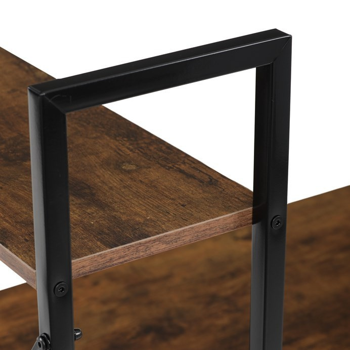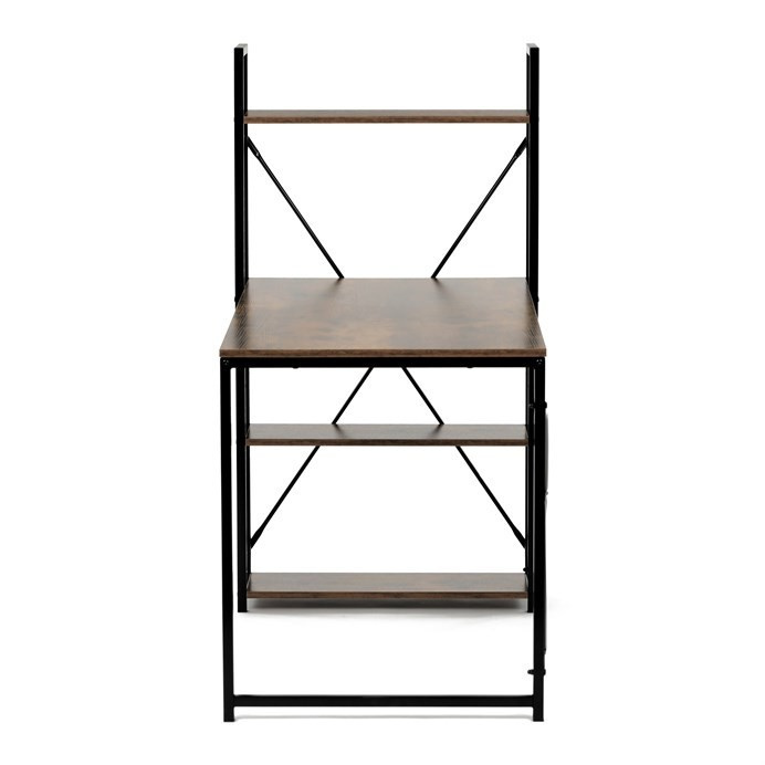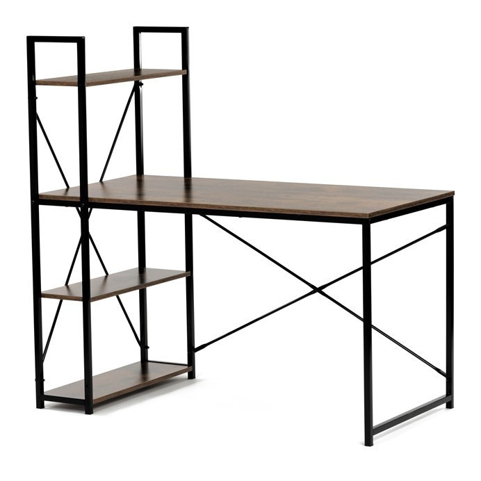 Pracovní stůl značky Autronic v industriálním stylu kombinuje funkčnost a moderní design. Hnědá MDF deska s dekorem starého dřeva a matnou úpravou přináší do interiéru teplý, přírodní vzhled. Stabilní černá kovová konstrukce se čtvercovými nohami zaručuje pevnost a odolnost. Praktické policie po straně poskytují dostatek úložného prostoru pro knihy, dokumenty nebo dekorace, což oceníte v každé pracovně. Stůl se hodí do domácí kanceláře či pracovny a díky svému industriálnímu vzhledu snadno zapadne do moderních interiérů.Rozměr police: 60 x 21 cm.