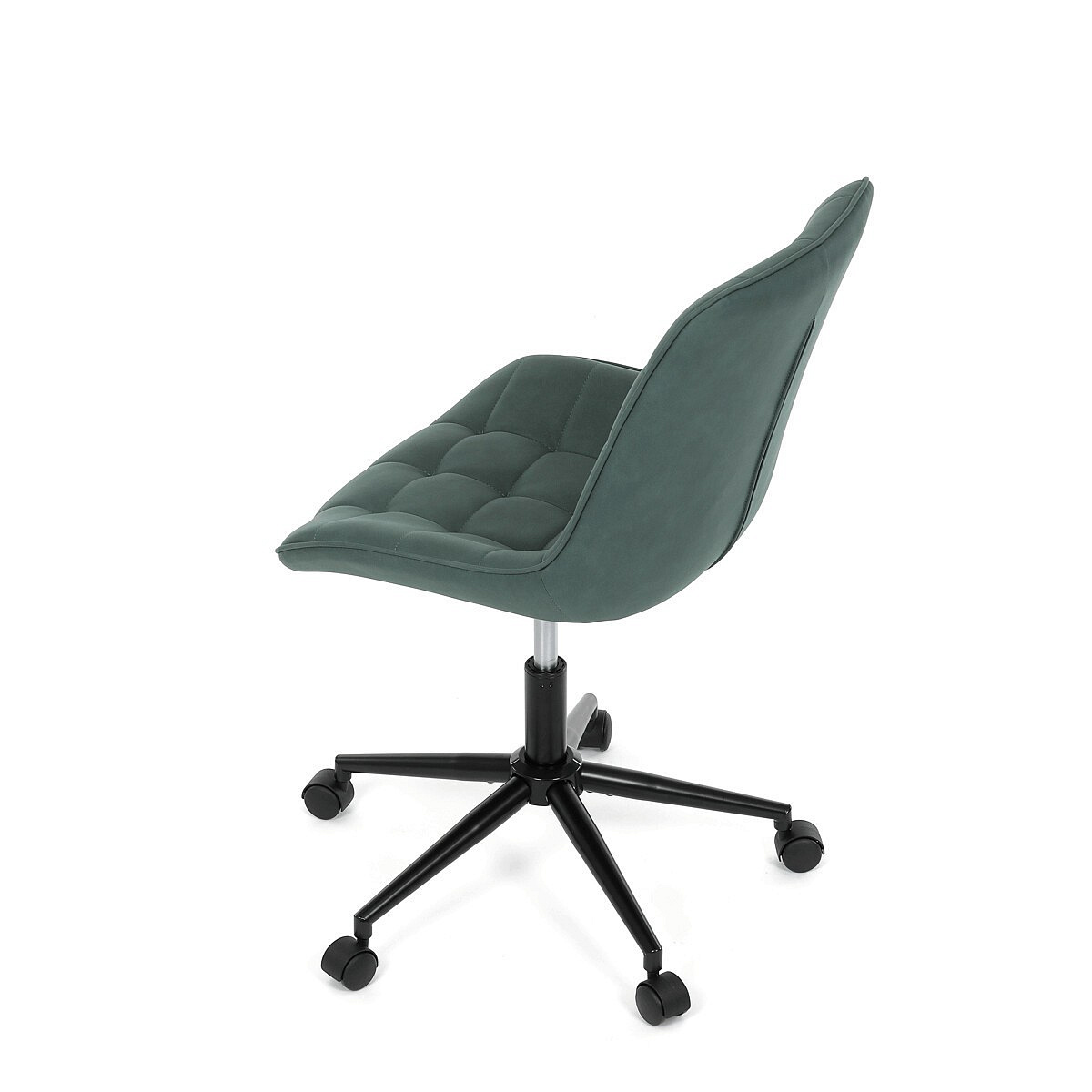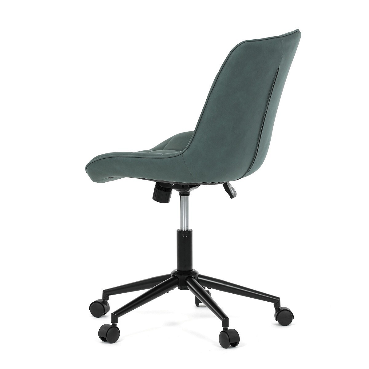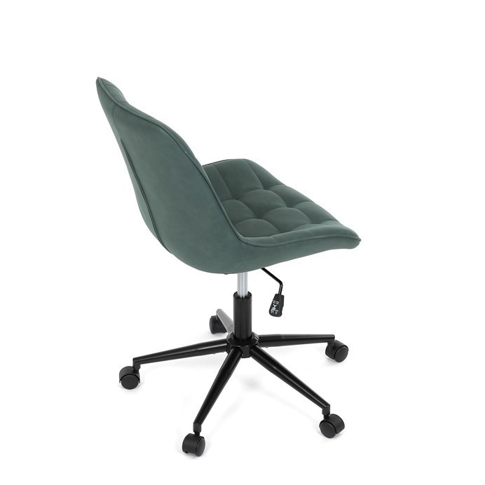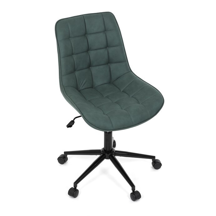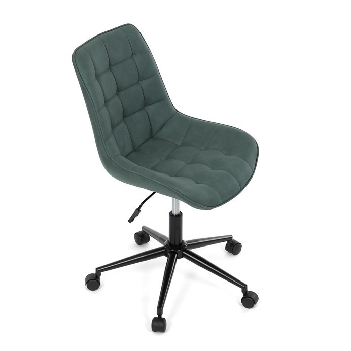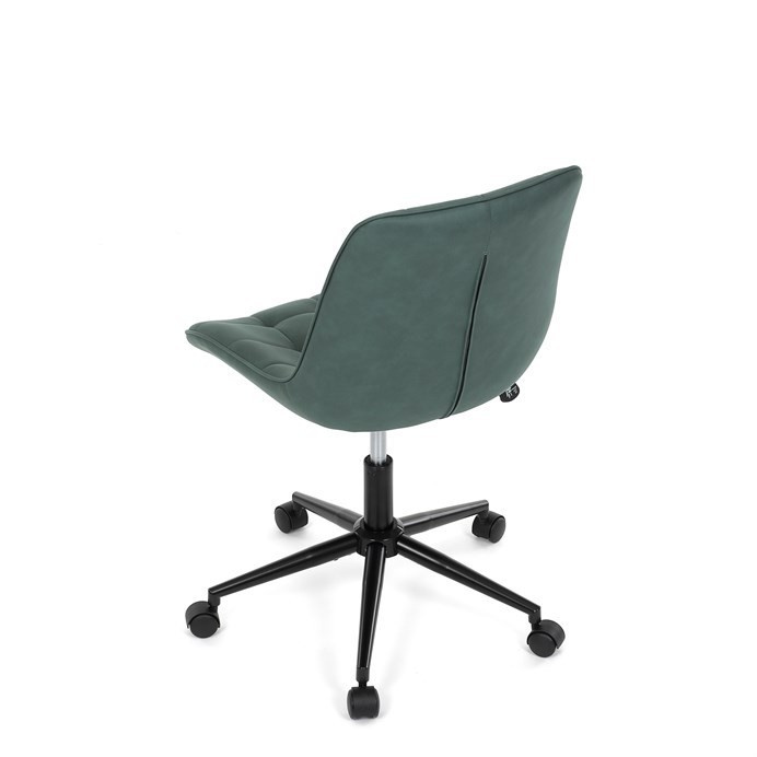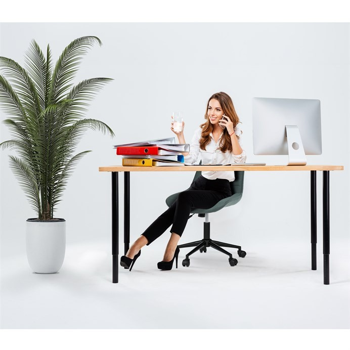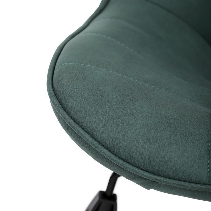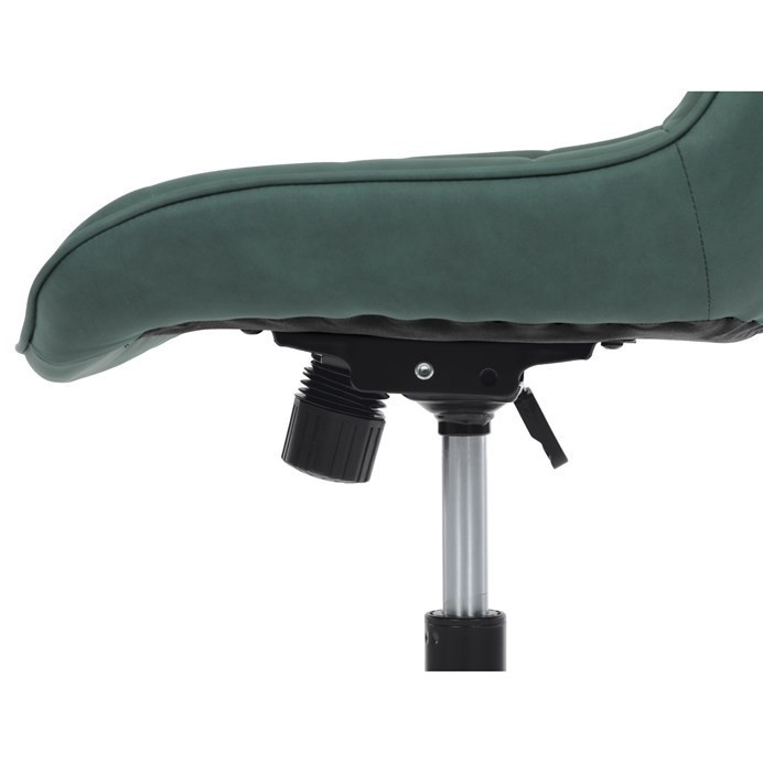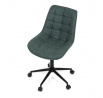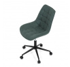 Kancelářská židle v zelené látce s dekorem broušené kůže nabízí komfortní sezení díky výškově nastavitelné sedací ploše a houpacímu mechanismu, který umožňuje mírné pohupování pro uvolnění během práce. Sedák i opěradlo jsou čalouněné prémiovou látkou, která kombinuje příjemný vzhled s kvalitním zpracováním. Pevný černý kovový kříž zajišťuje stabilitu a odolnost celé židle. Absence područek a bederní opěrky přispívá k jednoduchému a modernímu designu, který se snadno integruje do různých pracovních prostorů. Židle je navržena tak, aby podporovala ergonomii a dlouhodobý komfort při práci.