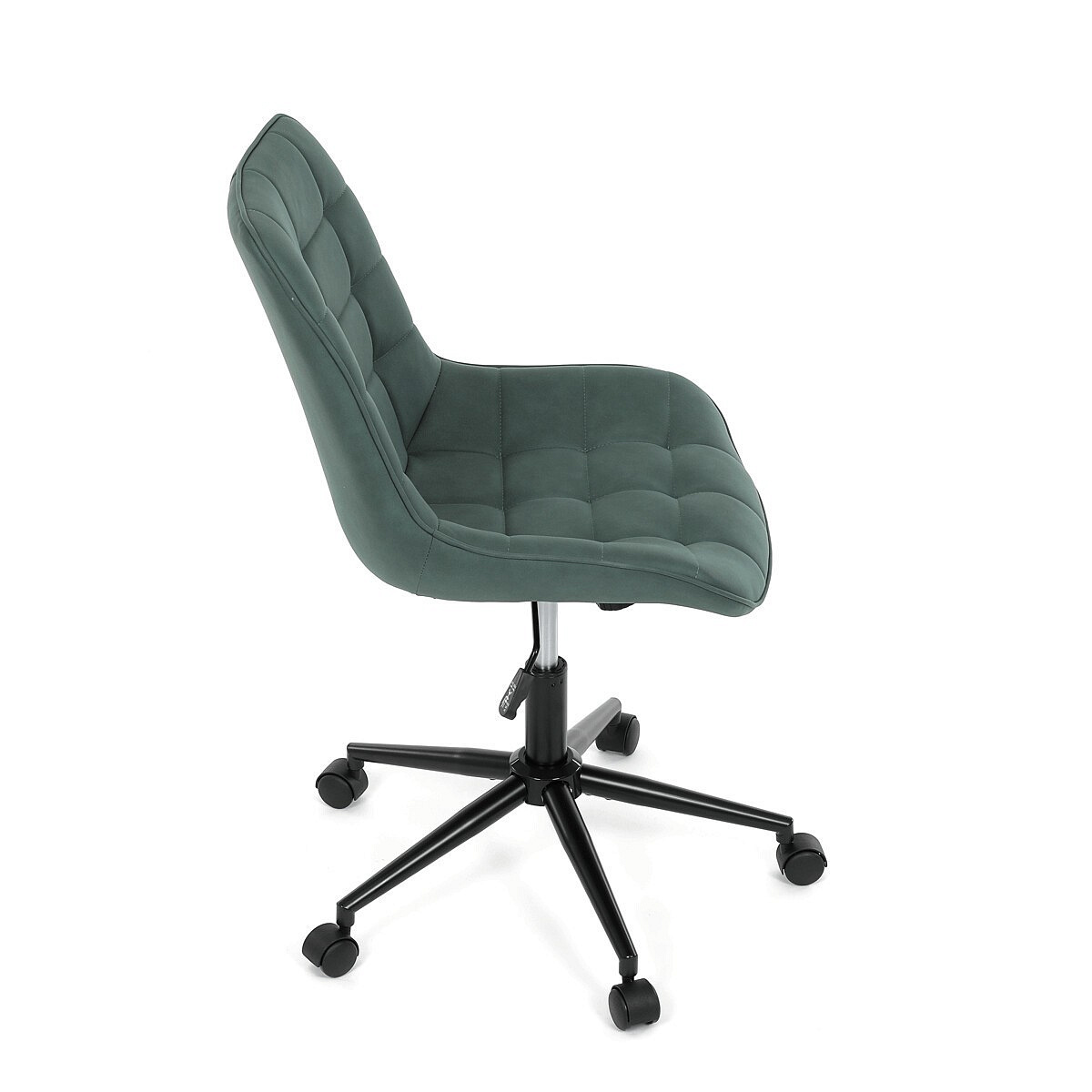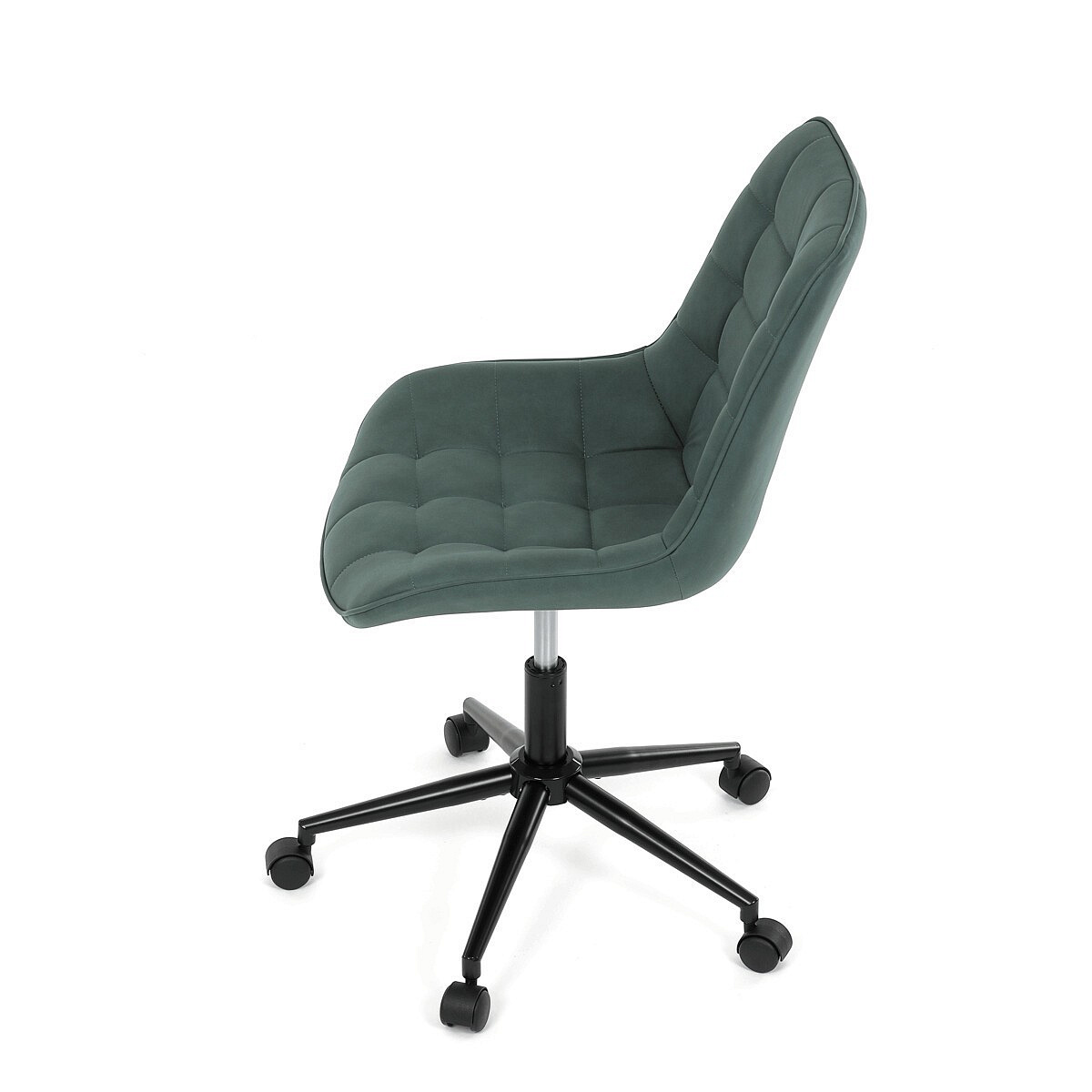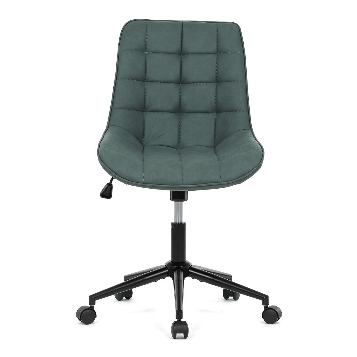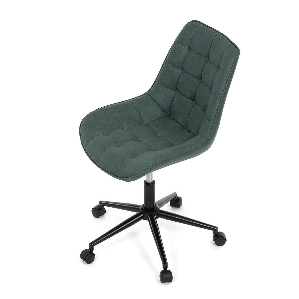 Kancelářská židle v zelené látce s dekorem broušené kůže nabízí komfortní sezení díky výškově nastavitelné sedací ploše a houpacímu mechanismu, který umožňuje mírné pohupování pro uvolnění během práce. Sedák i opěradlo jsou čalouněné prémiovou látkou, která kombinuje příjemný vzhled s kvalitním zpracováním. Pevný černý kovový kříž zajišťuje stabilitu a odolnost celé židle. Absence područek a bederní opěrky přispívá k jednoduchému a modernímu designu, který se snadno integruje do různých pracovních prostorů. Židle je navržena tak, aby podporovala ergonomii a dlouhodobý komfort při práci.