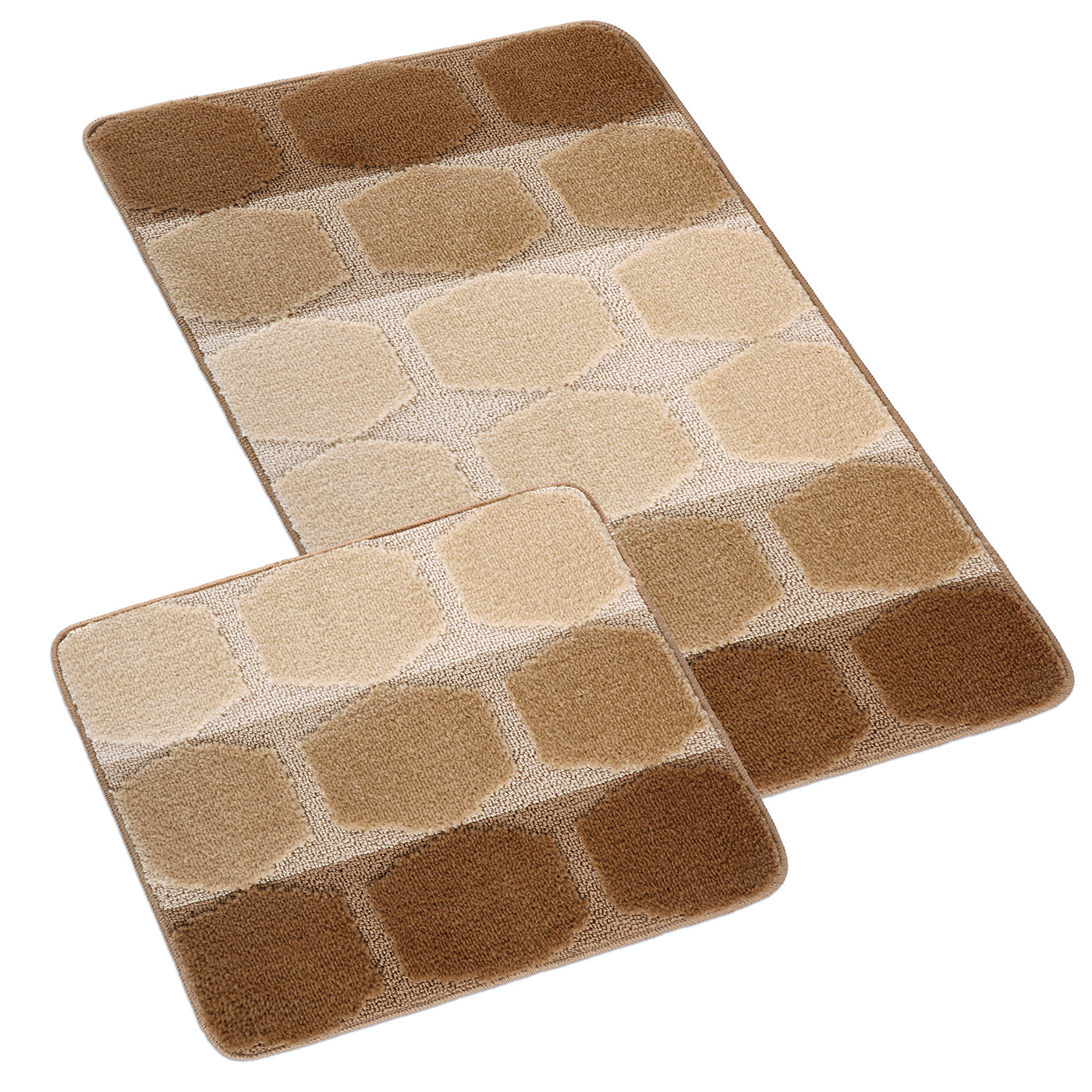 Koupelnové předložky nabízíme v mnoha barevných variacích, rozměr předložky před WC je 60x50cm, předložka je bez výkroje na WC. Možno barevně dokompletovat s předložkou před vanu 60x100cm. Rub předložek je tvořen povrchem z latexového nátěru, předložky nekloužou po koupelnové podlaze.