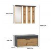 Nadčasová předsíňová sestava Pargas splní očekávání všech, kteří oceňují kombinaci elegance a praktičnosti. Skvěle zapadne do interiérů s minimalistickým či skandinávským charakterem. Sestava se skládá z věšáku se zrcadlem a pohodlného botníku s čalouněným sedákem s výklopnými dvířky. Je vyroben z kvalitního lamina, které je snadno udržovatelné a odolné proti oděru, dlouhou životnost nábytku zajišťují hrany zakončené ABS materiálem.