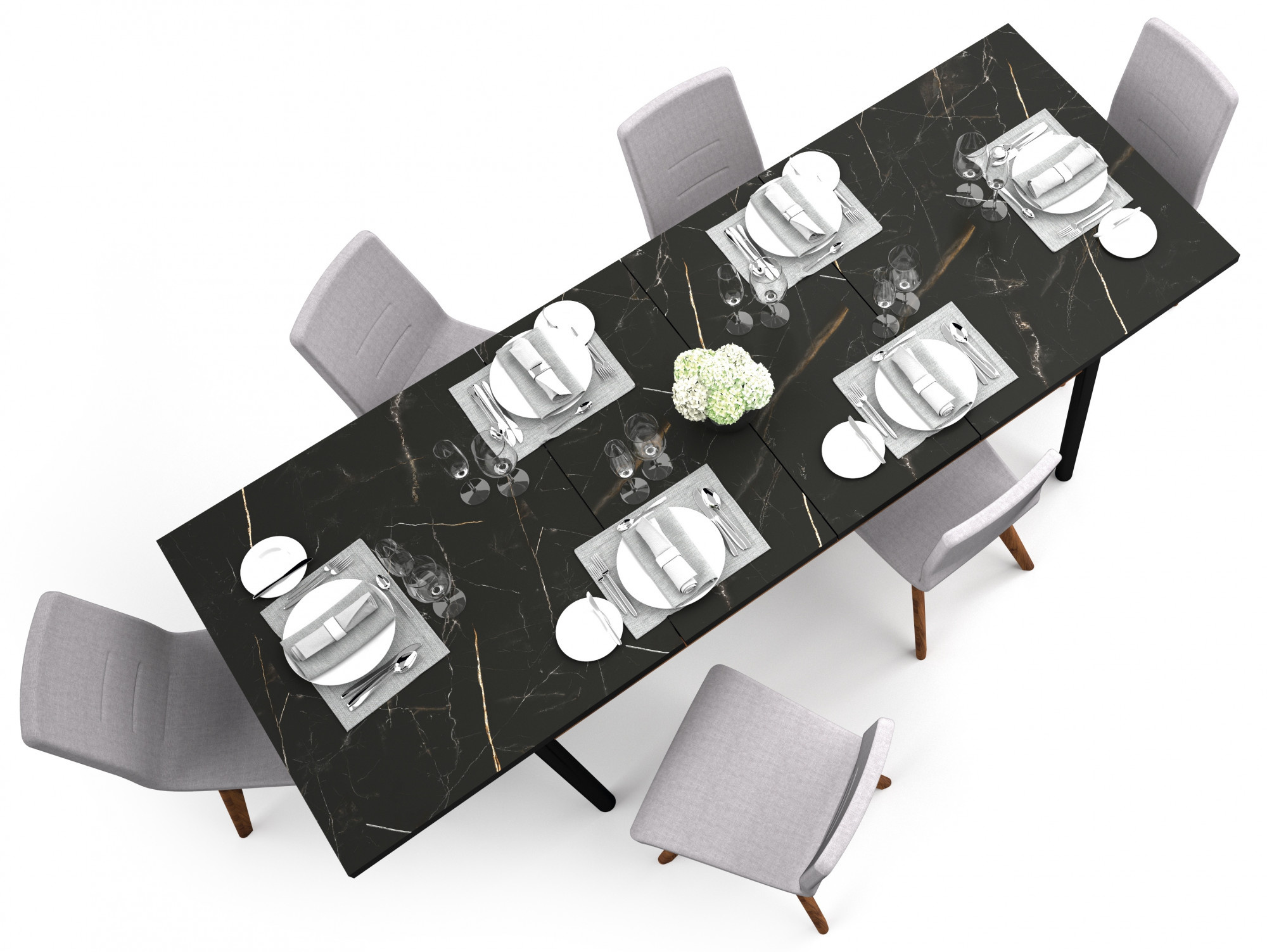 - 2 kiegészítő elem az asztal meghosszabbításához, mindegyik 40 cm