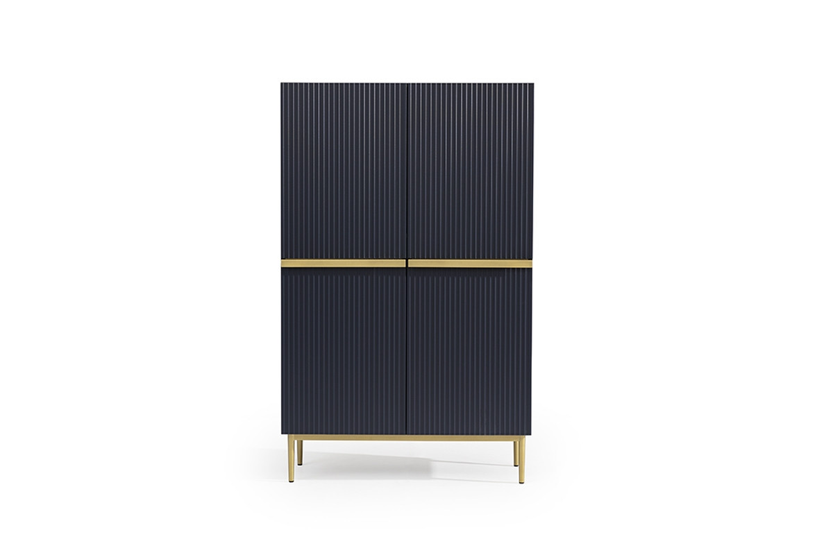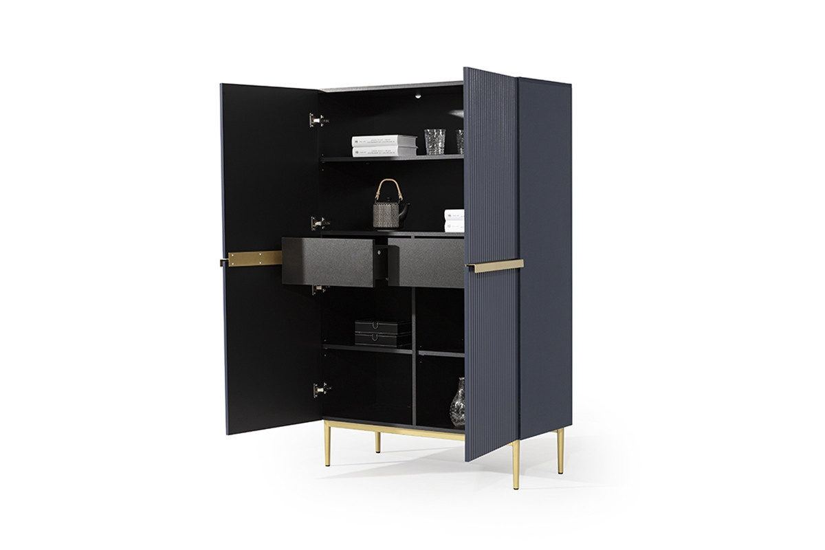 Nicole příborník - MDF tmavě modrá / zlaté nožky, šířka: 100, výška: 160, hloubka: 45, montáž: samostatně