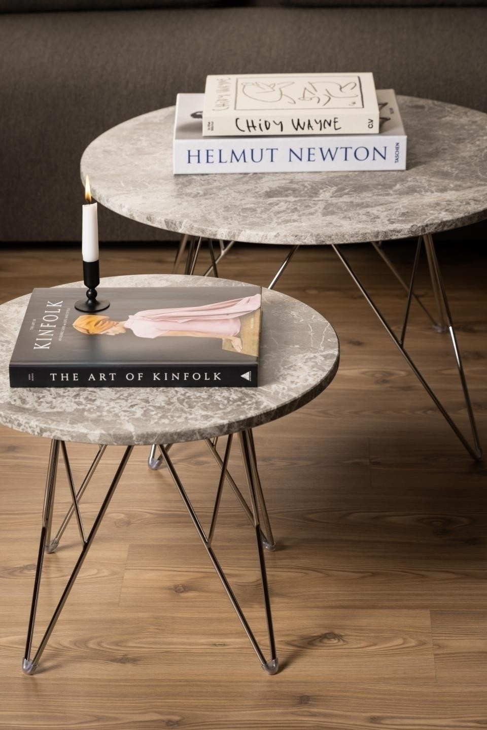 Kerek oldalsó asztal Prunus, matt szürke-barna lakkozott Spider márvány asztallappal, krómozott acél drót alapzattal. Ez az oldalsó asztal mind a minimalistáknak, mind a maximalistáknak tetszeni fog. Látványos, vizuálisan lenyűgöző asztallappal rendelkezik, amely szürke-barna márványból készült, krómozott drótállványra támaszkodva. A kiegyensúlyozott arányok közötti kontraszt könnyed bájt kölcsönöz a projektnek. Könnyen alkalmazkodik bármilyen belső stílushoz. Összeszerelést igényel. Az asztal tömege: 14,4 kg. Max. terhelés 20 kg Kartondobozok méretei: 14x66x77cm és 59,5x31x11cm