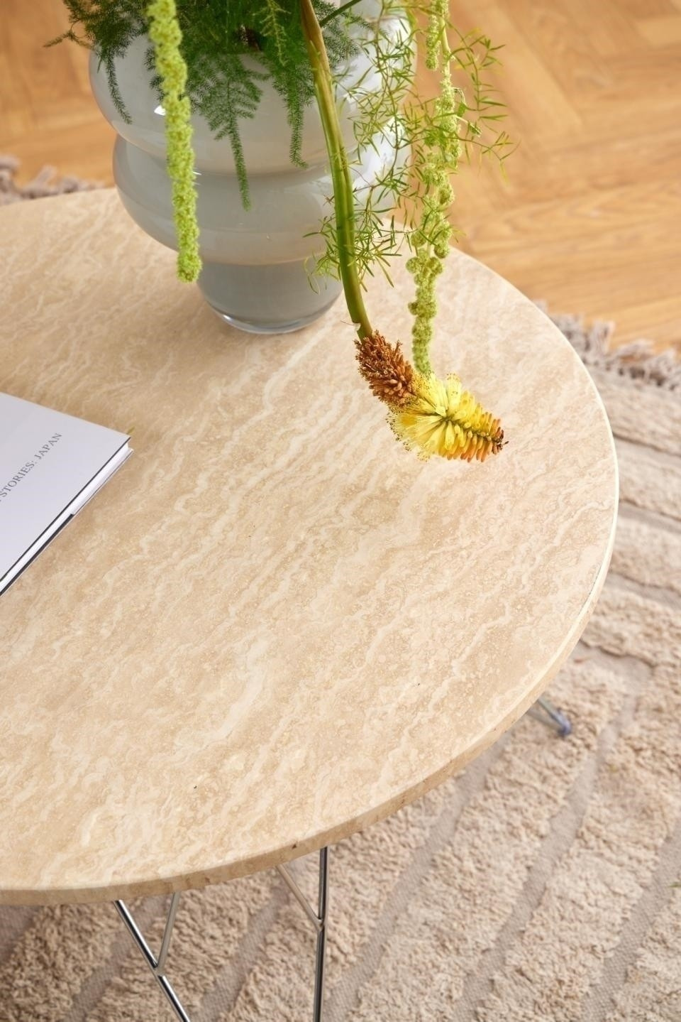 Kerek Prunus konferenciaasztal, matt bézsre lakkozott travertin asztallappal, krómozott acél drótvázzal. Ez a dohányzóasztal mind a minimalistáknak, mind a maximalistáknak tetszeni fog. Van egy látványos travertin lapja, amelyet krómozott huzalállvány támaszt alá. A kiegyensúlyozott arányok közötti kontraszt könnyed bájt kölcsönöz a projektnek. Könnyen alkalmazkodik bármilyen belső stílushoz. Az asztal súlya 30 kg. Kartondobozok méretei: 14x87x100cm és 66x43x14,8cm