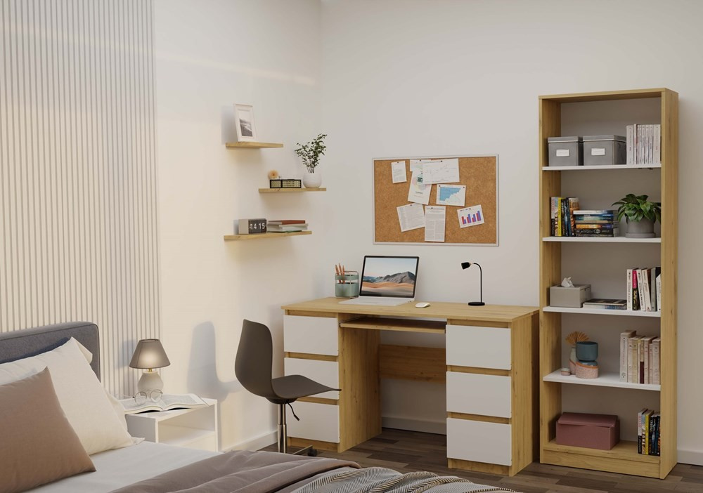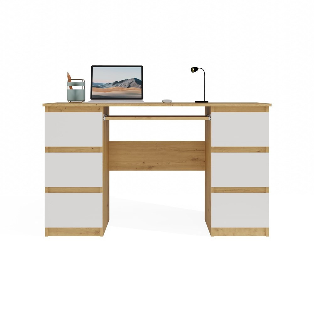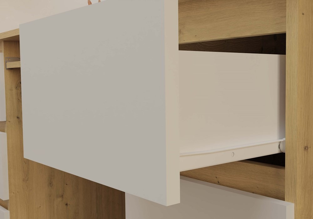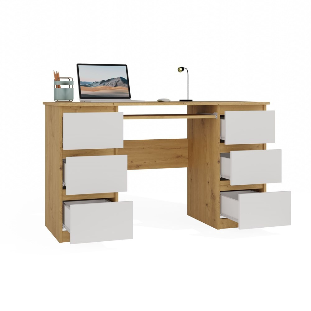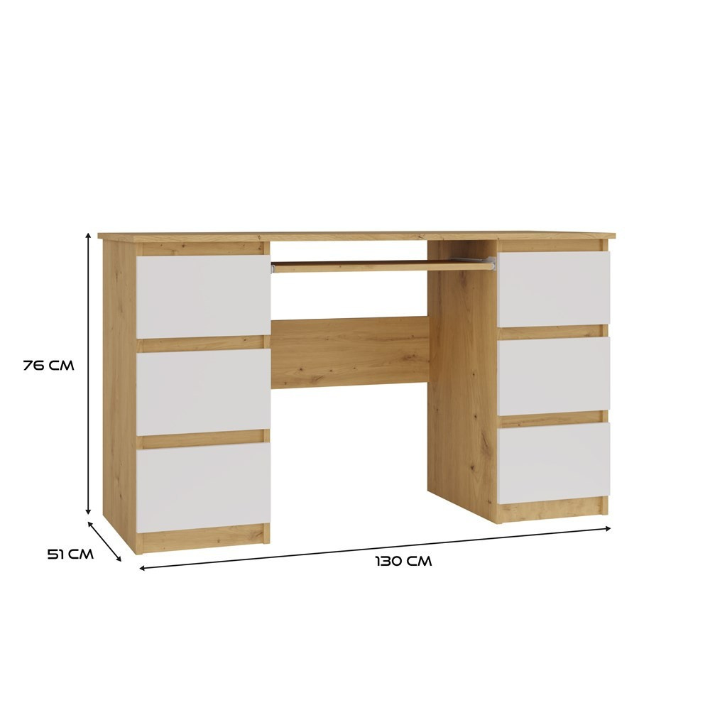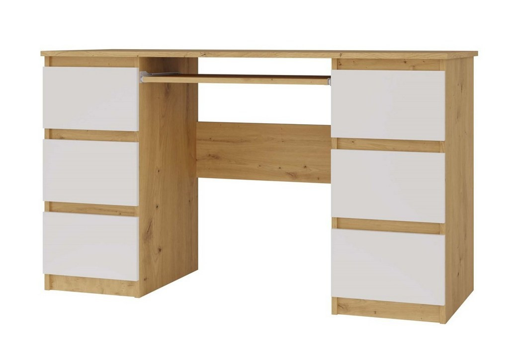 Funkční psací stůl Kima v jednoduchém a moderním designu poskytuje dostatečnou pracovní plochu a díky prostorným zásuvkám také spoustu úložného prostoru. Bezúchytková čela zásuvek zajistí pohodlné používání. Stůl je vyrobený ze snadno udržovatelného lamina, hrany jsou zakončené vysoce odolným ABS materiálem.