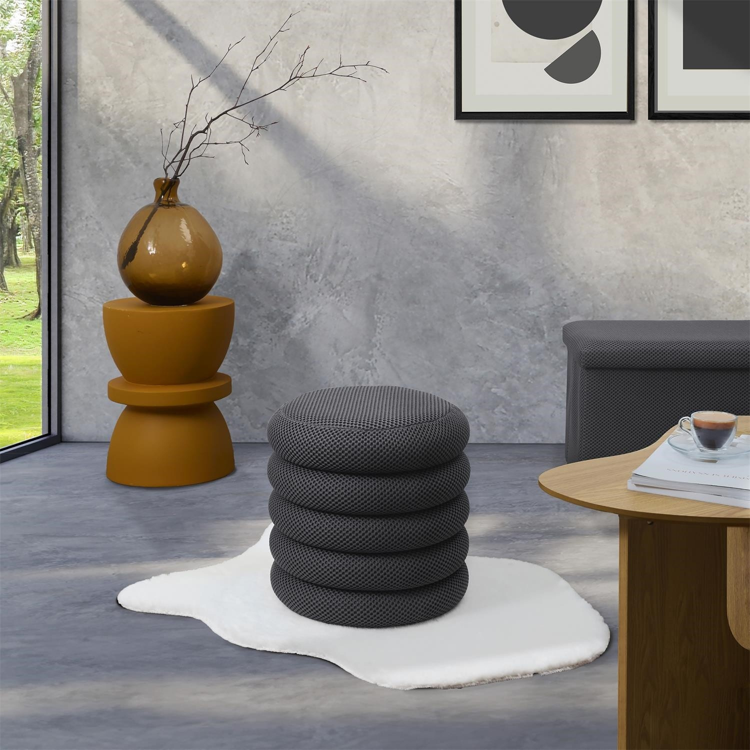 A Pufa Atom egy háromdimenziós szövettel borított kerek ülés és minimalista forma kombinációja. Puff, amely MDF lapból készült, puha kárpitozó habbal bevonva. A háromdimenziós szövet időtlen stílust kölcsönöz a bútornak. A puff levehető fedéllel rendelkezik, így belsejében elrejthetünk apró tárgyakat, mint például egy takarót vagy egy kis párnát.