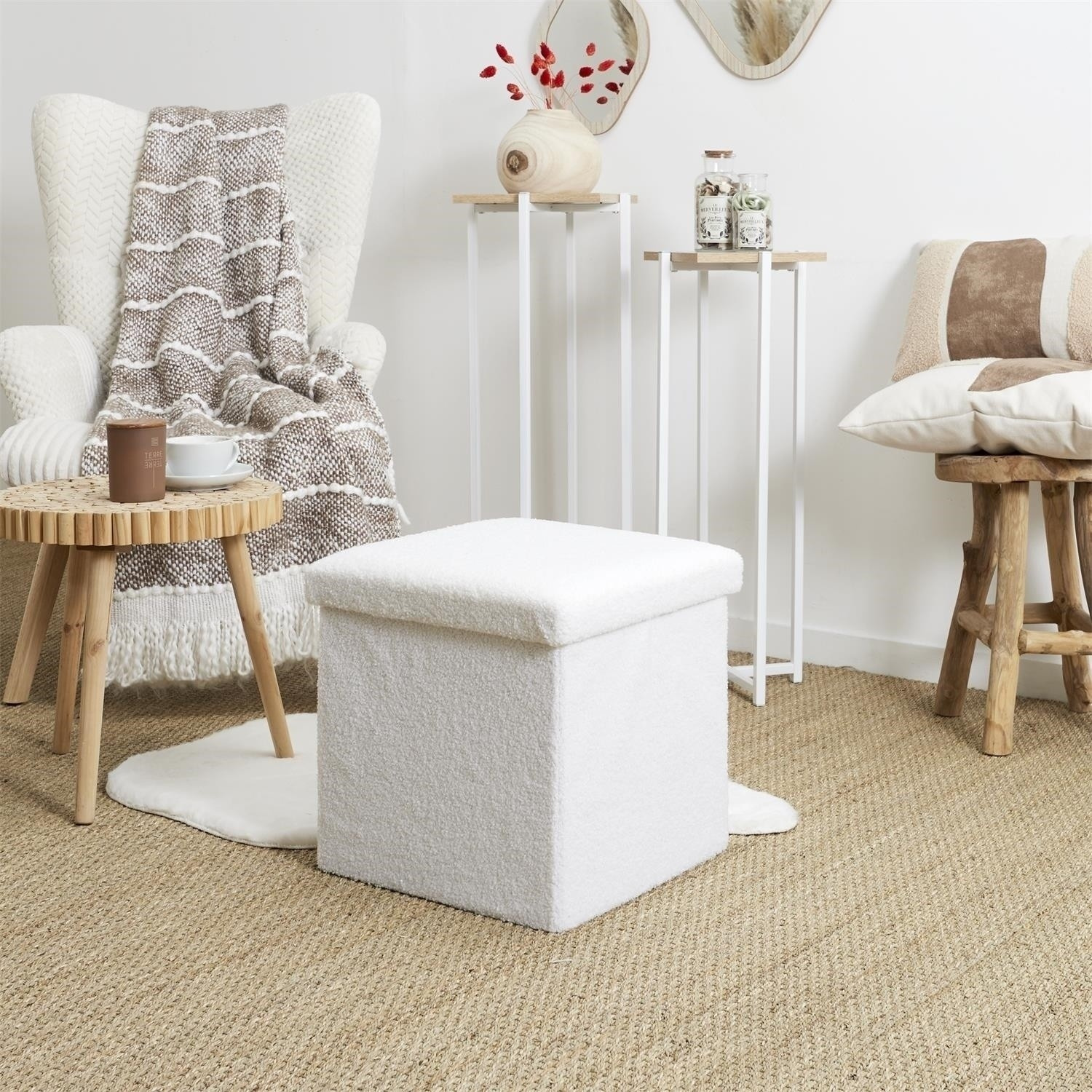 Az Intesi márkájú összecsukható puff időtlen kiegészítő a belső térbe. Bouclé szövettel borított puff, amely kellemes tapintású és megjelenésű. A puff nemcsak elrejti az apróságainkat, hanem ülőhelyként is szolgálhat. A puff összecsukható, így amikor nem használjuk, kevés helyet foglal. Anyag: MDF, bouclé szövet, kárpitozó hab