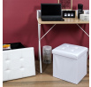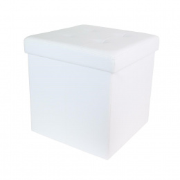 A Pufa Intesi Vels a nagyon divatos összecsukható ülőgarnitúra kollekció újabb modellje. Ez a rendkívüli projekt egy teljes értékű puff, amely remekül illik egy további ülőhelyként a kávésarokban vagy az előszobában, ahol segít kényelmesen felvenni a cipőt. A tetejét borító erős, rendkívül rugalmas hab gondoskodik a felhasználó kényelméről, és puha, rugalmas felületet biztosít számára. Az elem nemcsak kényelmes, hanem nagyszerűen is néz ki, ami az ízléses steppelésnek és varrásnak köszönhető. A puff ideális tárolóhely lesz a gyerekszobába, további tárolóhely a fiatalok szobájában. Ez nem csak egy tároló ruhák, játékok vagy párnák számára. A puff szintén kényelmes ülőhely. A puff ülés maximális terhelhetősége akár 110 kg. A puff poliészterből és fehér színű ökobőrből készült. Max. darabszám. kartonban: 4 Karton méretei: 37,2 x 6 x 37,2 cm