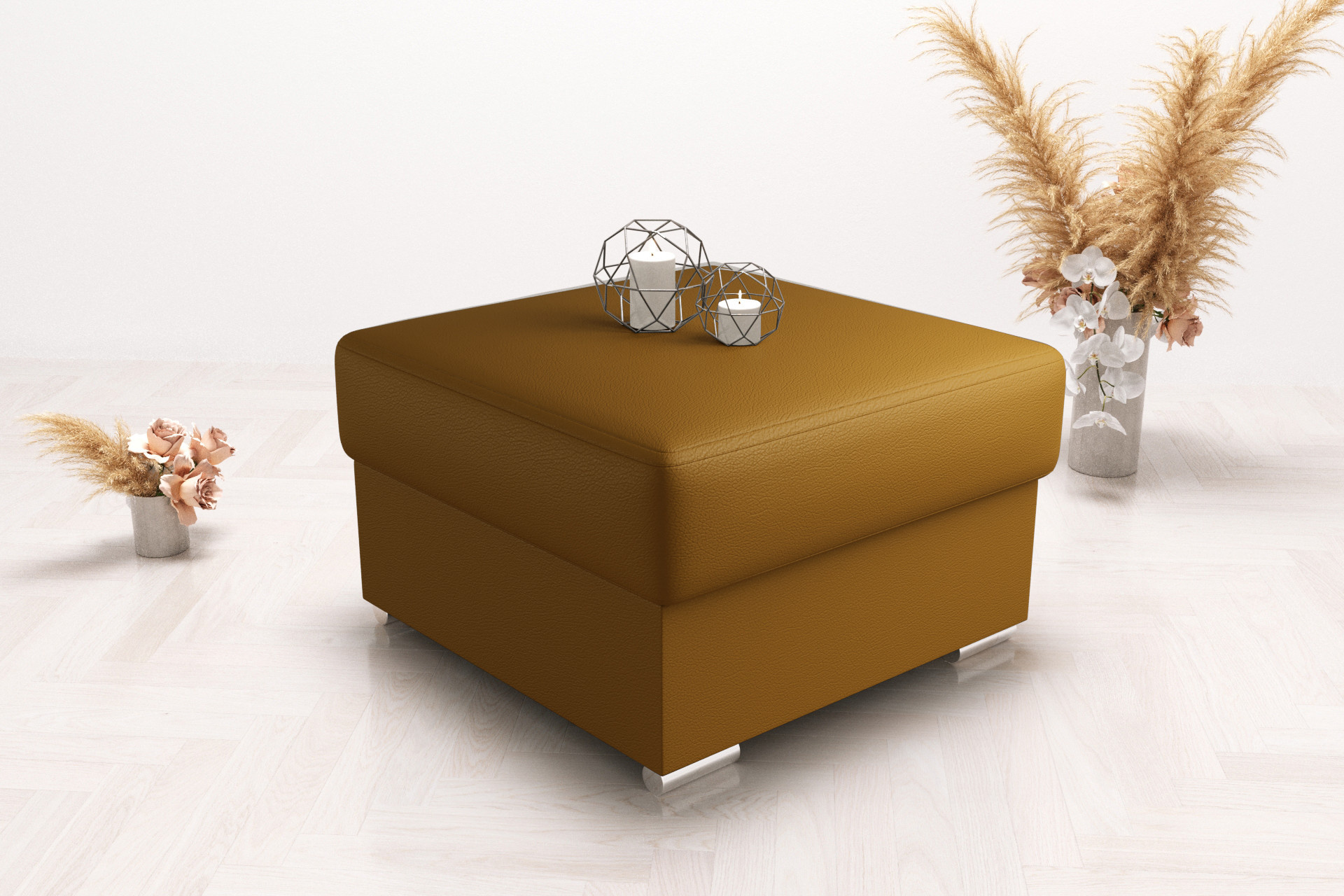 PUFA SKÓRZANA Z POJEMNIKIEM 70x70 CM Pufa skórzana z pojemnikiem o wymiarach 70x70 cm to praktyczny i stylowy mebel, który może dodać elegancji i funkcjonalności Twojemu wnętrzu. W ofercie posiadamy także wymiary 100/55 lub 55/55. Wykonana z najwyższej jakości skóry naturalnej, pufa nie tylko dodaje elegancji Twojemu domowi, ale także zapewnia dodatkowe miejsce do przechowywania. Dzięki wbudowanemu pojemnikowi, możesz w wygodny sposób schować poduszki, koc czy inne drobiazgi, utrzymując porządek w salonie. Solidna konstrukcja i staranne wykonanie gwarantują, że ta pufa posłuży Ci przez lata. Możesz na niej wygodnie usiąść i wykorzystać ją jako dodatkowe miejsce do siedzenia dla gości. Jej uniwersalny design pasuje do różnych stylów aranżacji wnętrz. Pufa skórzana z pojemnikiem 70x70 wykonanie Wszystkie elementy zostały obszyte grubym szwem, co stanowi ozdobę i wzmacnia połączenia tkanin. Budowa siedziska zapewnia miękkość i dużą odporność na odkształcenia, dzięki zastosowaniu pianki wysoko elastycznej. Wypełnienie siedzisk to pianka T35, która zapewnia największy komfort. Stelaże wszystkich naszych mebli są wykonane z drewna i płyty meblowej. Siedziska i elementy silnie obciążone są zbudowane na ramach drewnianych. Wzornik skór naturalnych Madras jednokolorowy półmat, symbol K Madras antykowany połysk, cieniowana, symbole A, C, S Federica półpołysk, symbol G Skóry mogą wykazywać delikatne różnice w kolorystyce, strukturze powierzchni i mogą posiadać drobne blizny. Wynika to z naturalnego środowiska, w którym żyły zwierzęta i nadaje skórze jak i meblom indywidualny charakterystyczny wygląd. Cechy te absolutnie nie mają wpływu na trwałość użytkową mebli a wręcz przeciwnie. Takie i podobne zaniki nie są wadą, a jedynie potwierdzeniem autentyczności naturalnej skóry. Prosimy o przemyślane zakupy. Meble ze skóry naturalnej wykonujemy na zamówienie indywidualne i nie podlegają one zwrotowi.