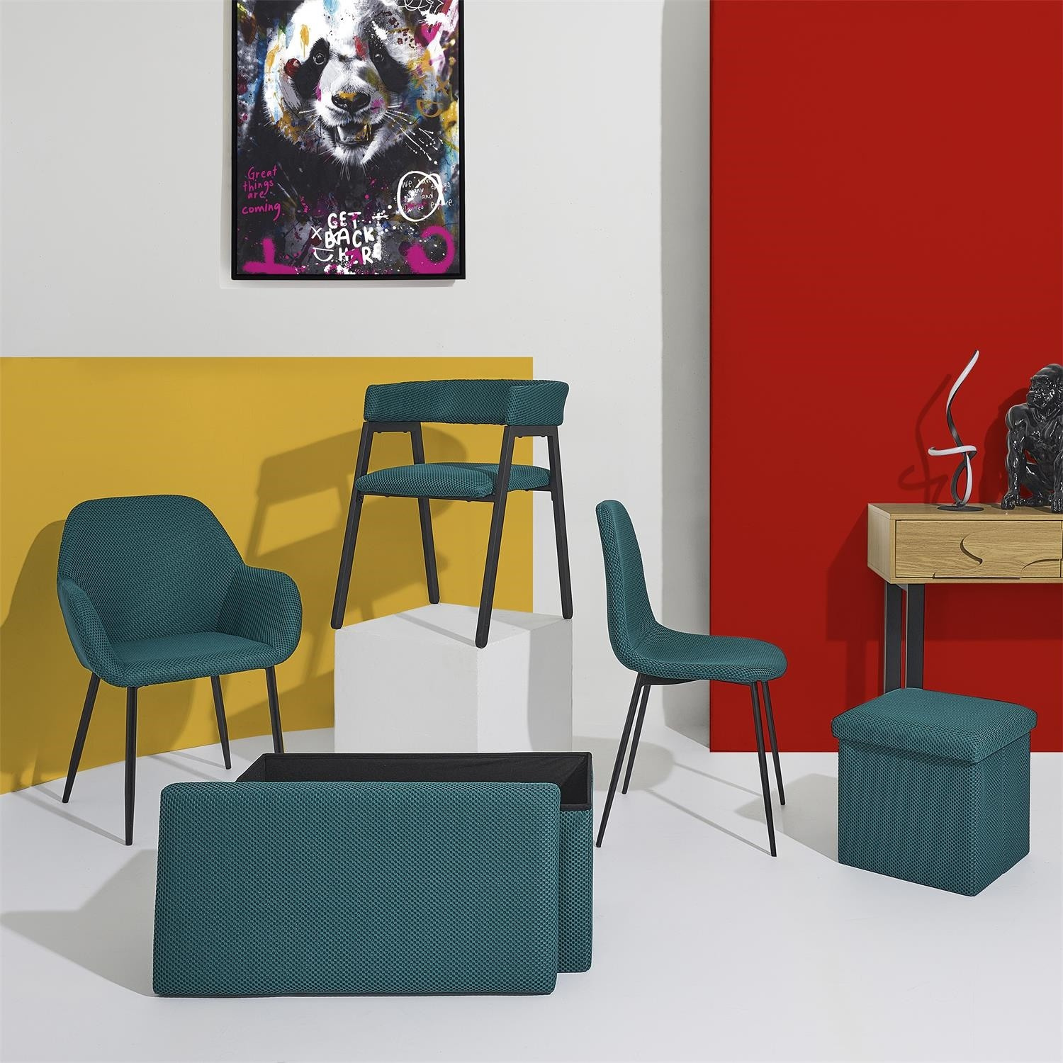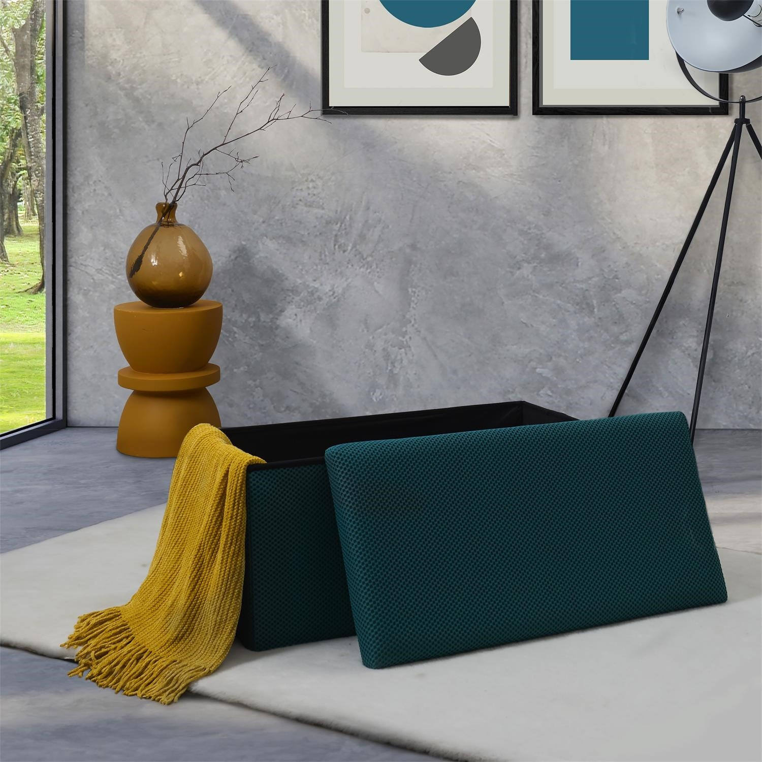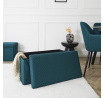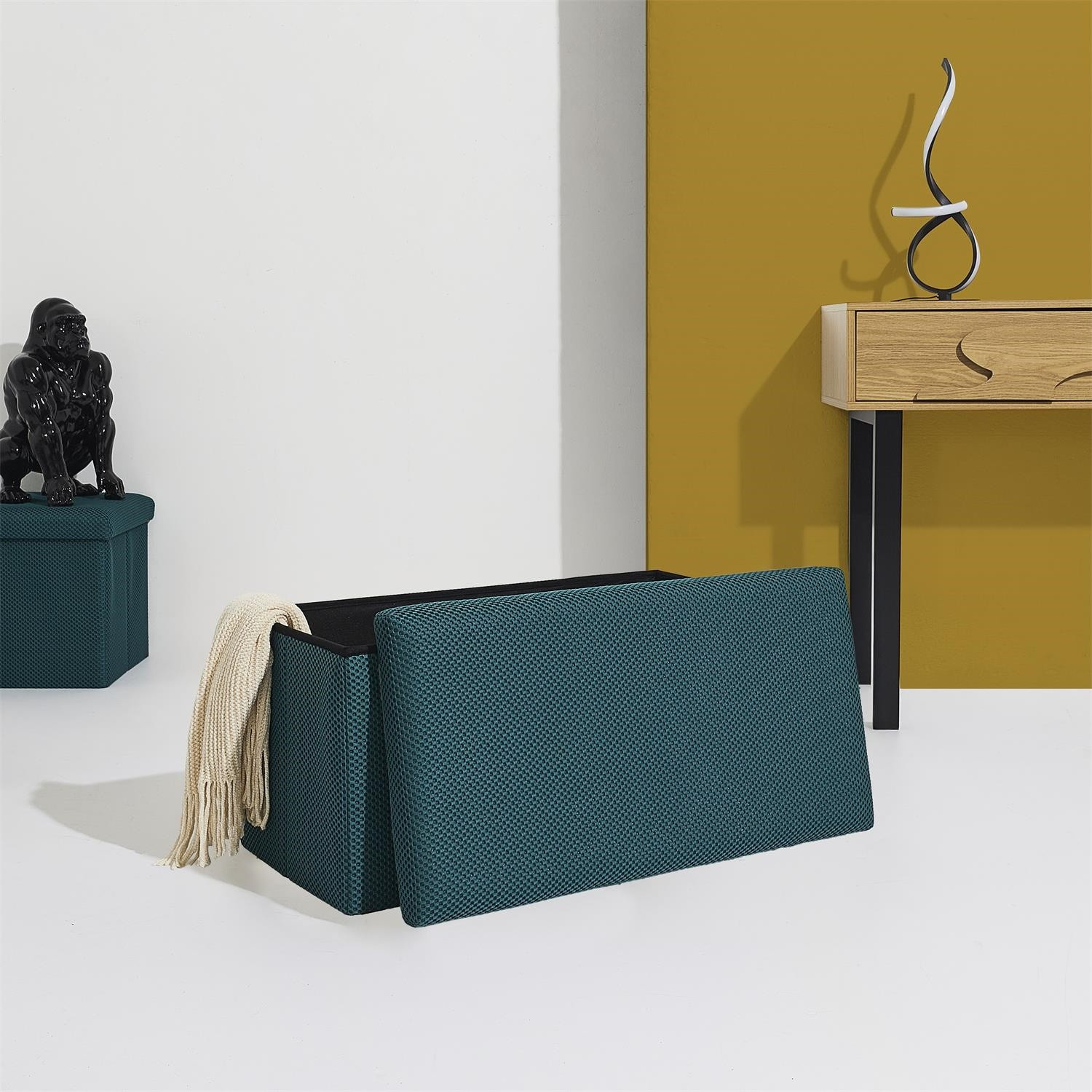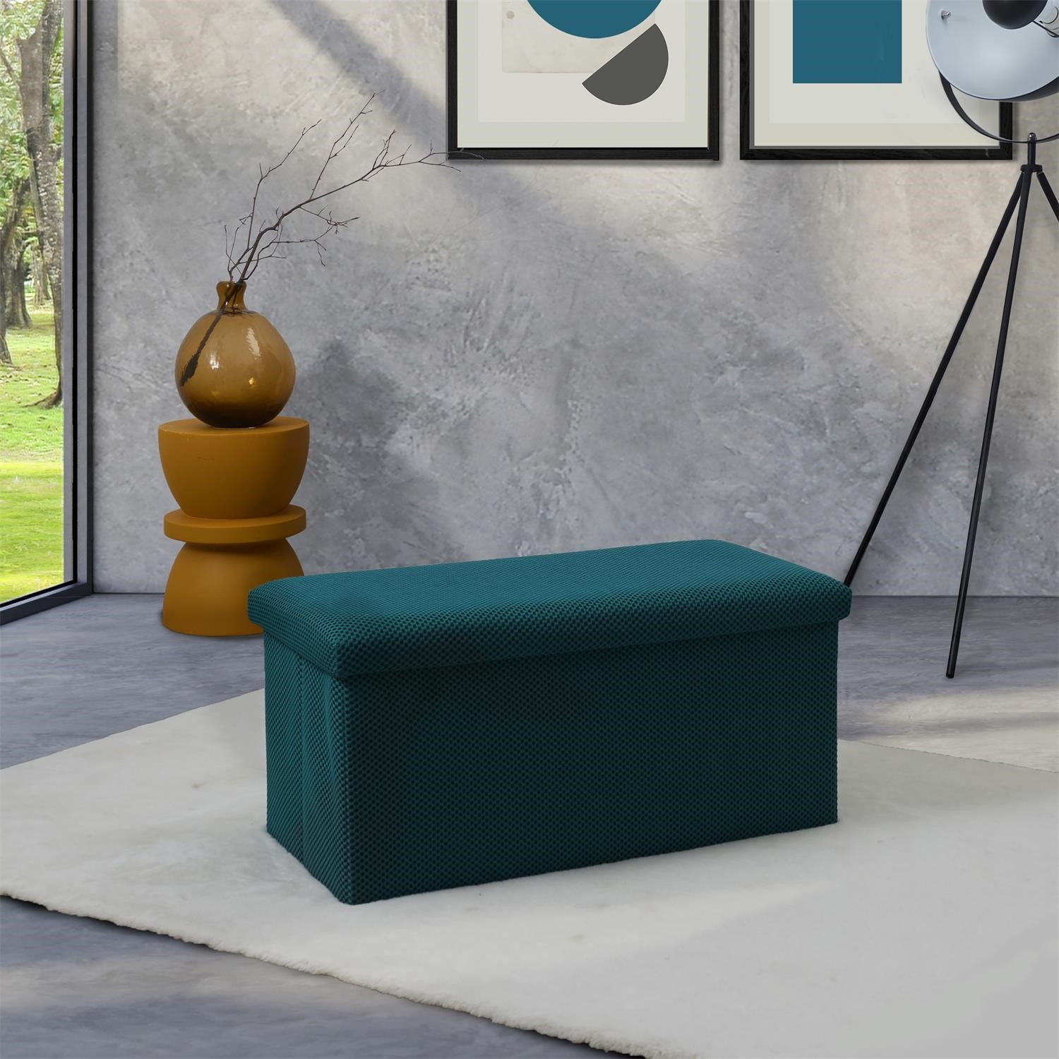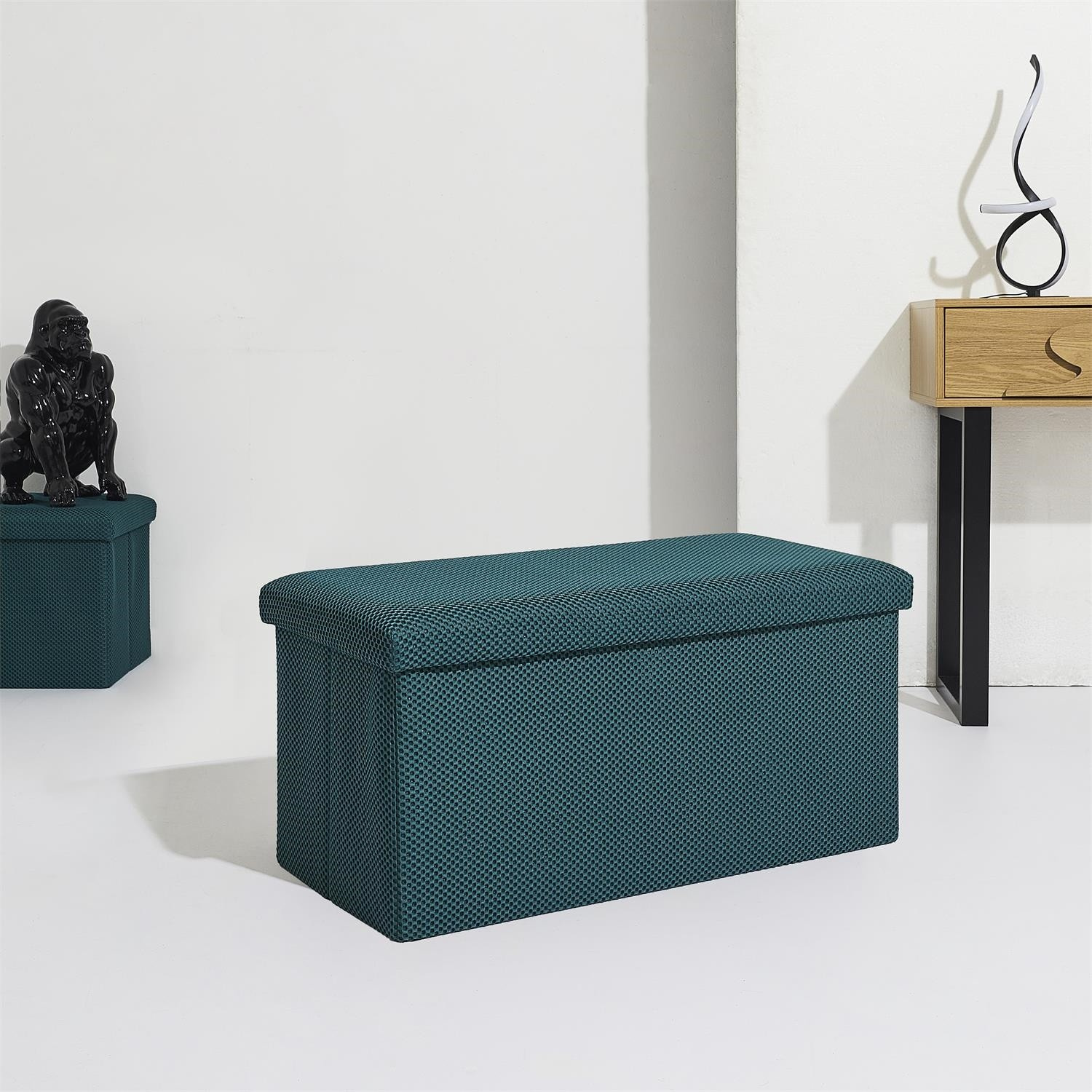 Összecsukható puff tárolóval minden diáklakás elengedhetetlen kelléke, vagy azok számára, akiknek további ülőhelyre és tárolóhelyre van szükségük. Puff, amely tartós MDF lapból készült kerettel rendelkezik, amely garantálja a bútor maximális terhelhetőségét akár 110 kg-ig. A puff összecsukható, amikor nem használjuk. Szétnyitva rengeteg helyet biztosít kisebb tárgyak, valamint nagyobb dolgok, mint például takarók, cipők vagy könyvek tárolására. A puff érdekes, háromdimenziós szövettel volt díszítve. Szövet 100% poliészter.