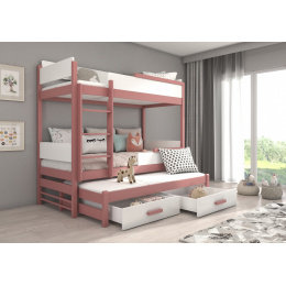QUEEN háromszemélyes emeletes ágy 200x90 Rózsaszín+Fehér