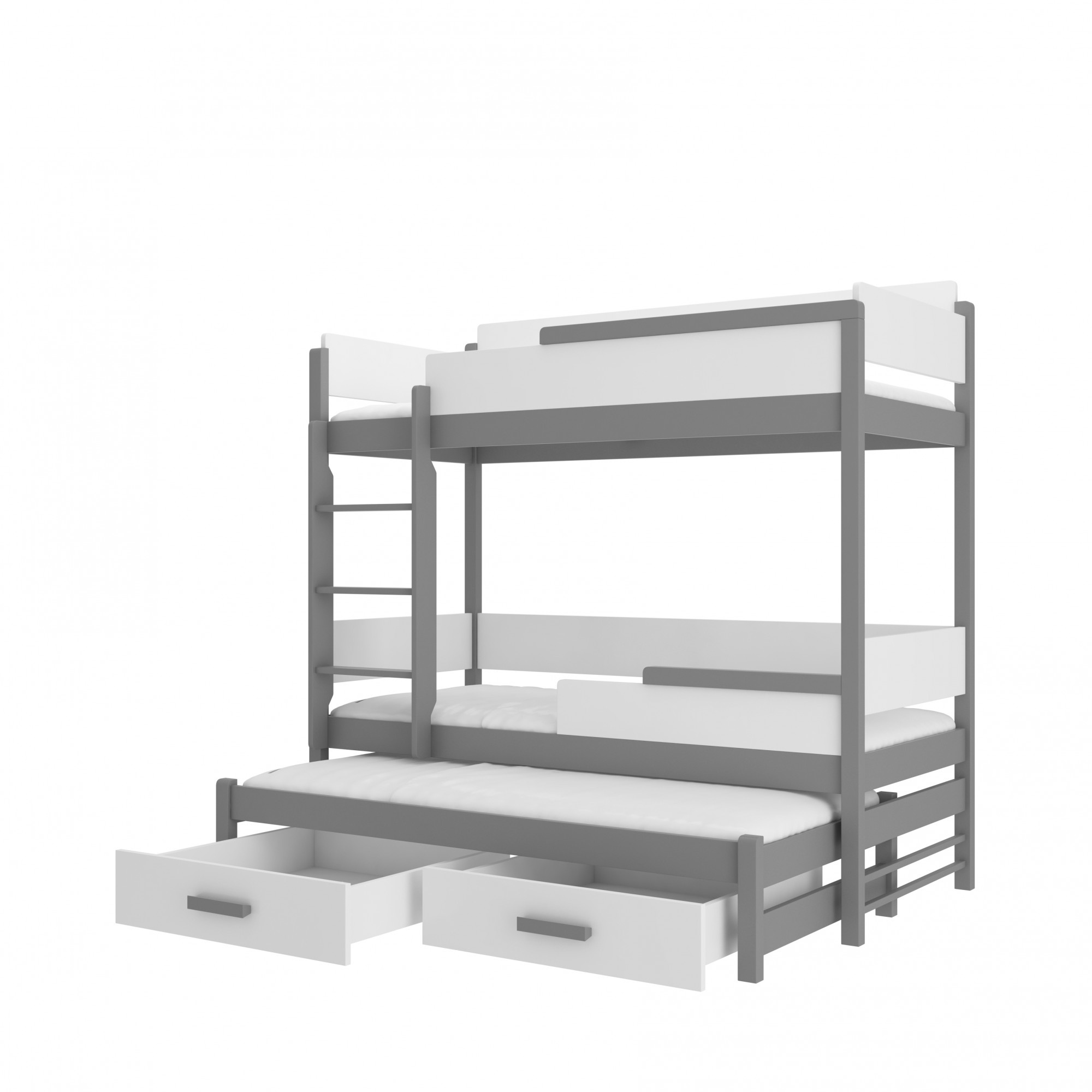 QUEEN háromszintes emeletes ágy 180x80 Grafit+Fehér