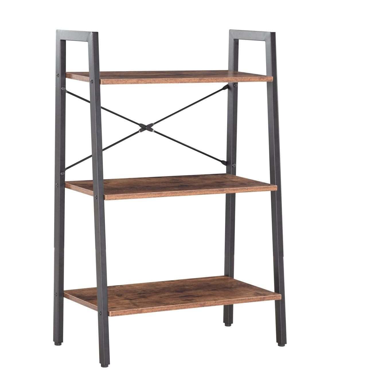 MÉRETEK: - mélység: 34 cm - szélesség: 64 cm - magasság: 97 cm ANYAG: - polcok: laminált forgácslap - keret: porszórt fém SZÍN: - polcok: rusztikus barna - keret: fekete