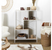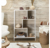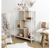 A Rack loft polc ideális bútor a modern nappaliba. A szokatlan alakú, szabálytalan polcok nemcsak jó tárolóhelyet biztosítanak, hanem egy dizájnos szerkezetet is, amely loftos kifejezést ad a nappalinak vagy a tinédzser szobájának. A polcok MDF lapból készültek, fa hatású furnérral díszítve. A polcok szélei és a polc alapja kiegészítik egymást a fehér festésüknek köszönhetően. A polcot fém keresztlécekkel erősítették meg, amelyek a hátulján keresztezik egymást. Érdekes megoldást jelentenek a polcok függőleges falai, amelyek szintén MDF lapból készültek. Lábak magassága: 10 cm Súly: 15 kg Csomag méretei: 36x12x122 cm