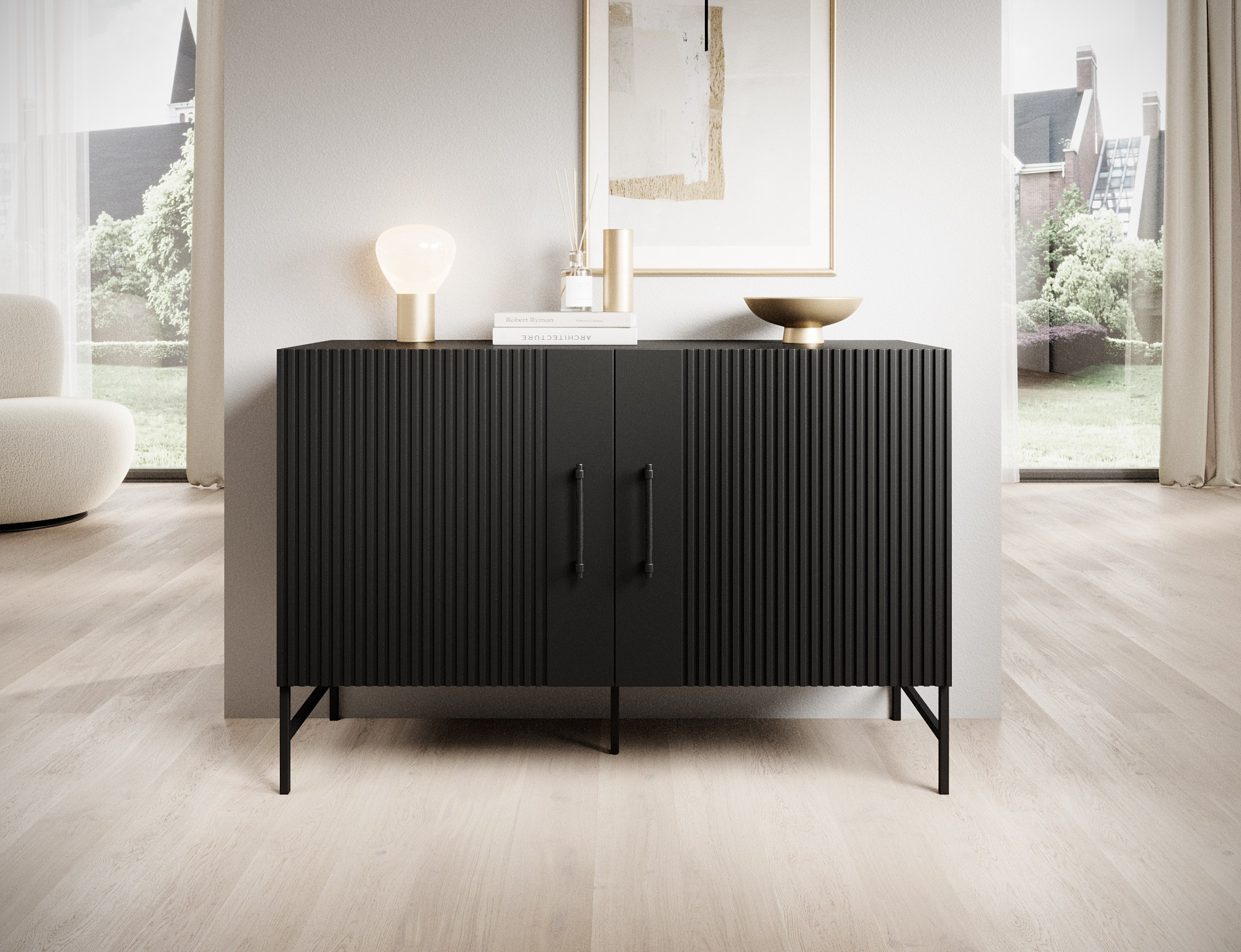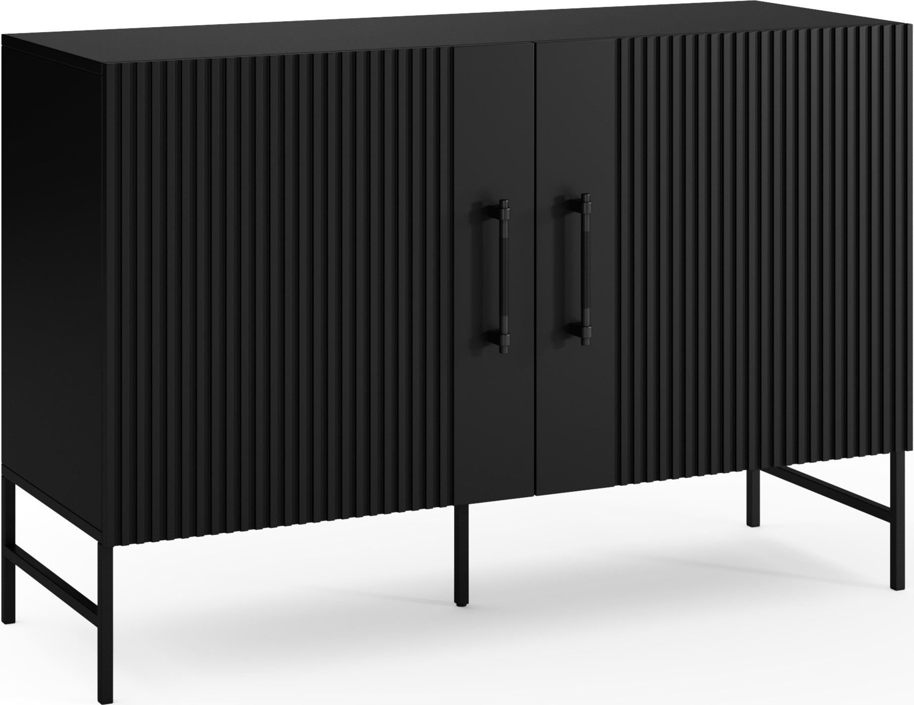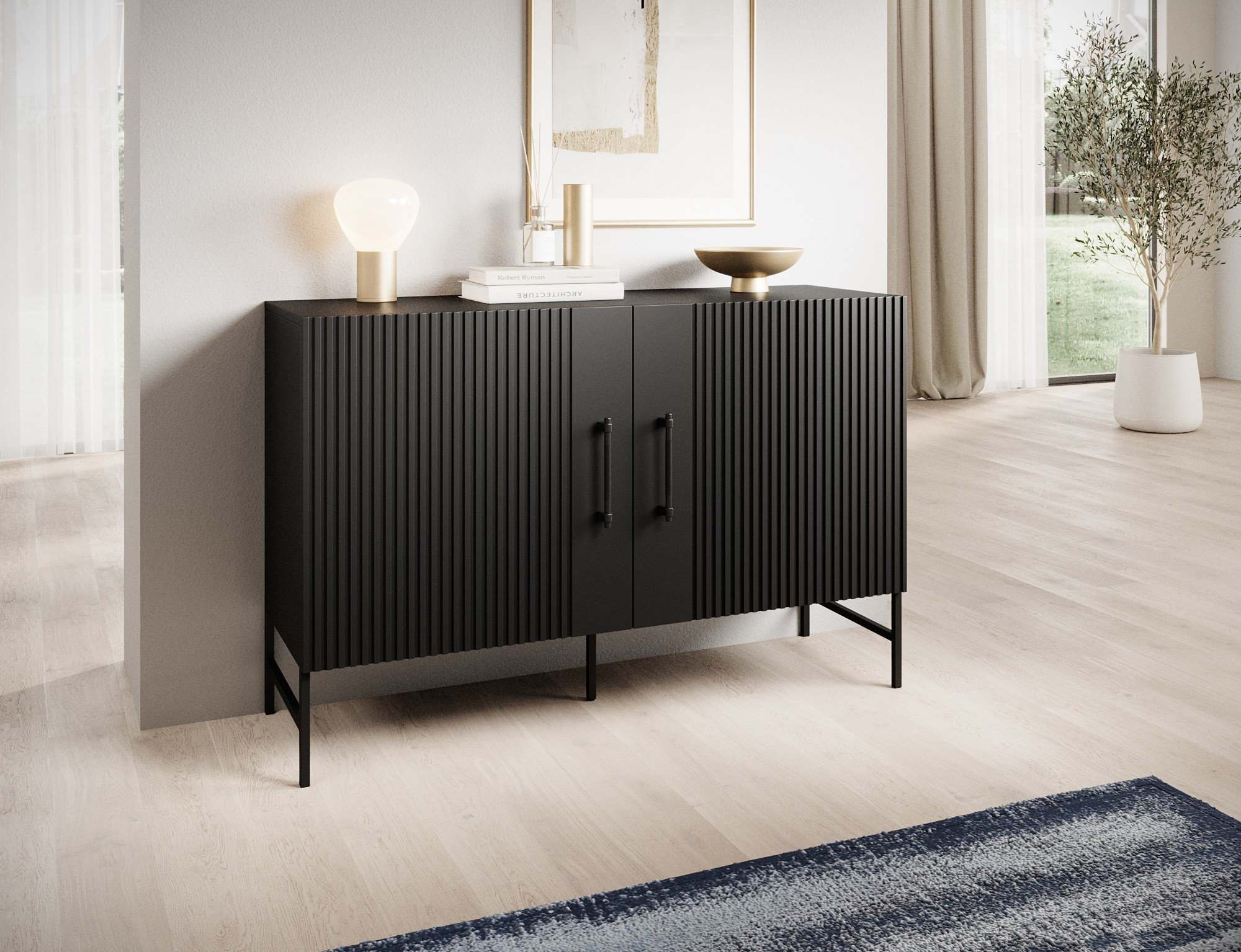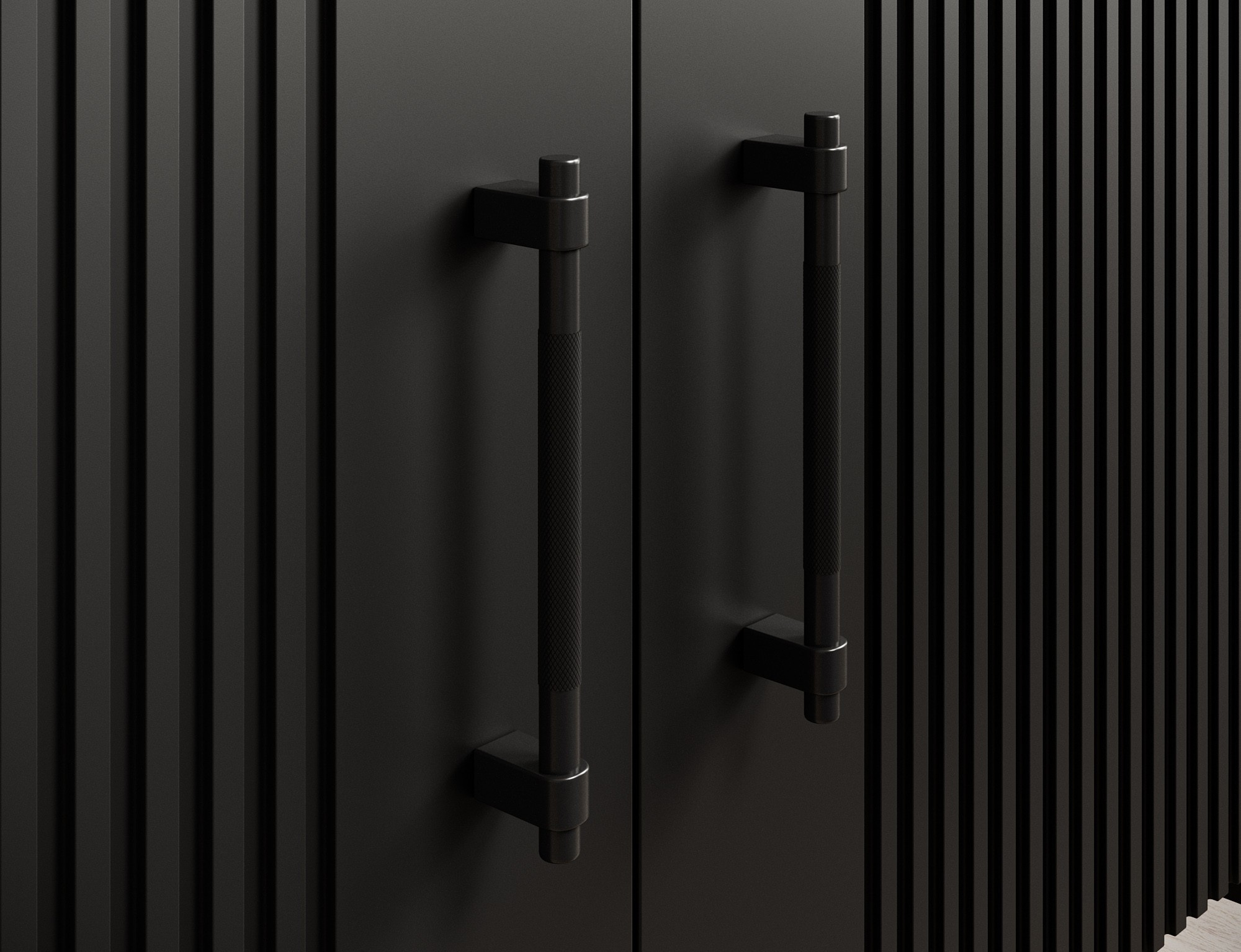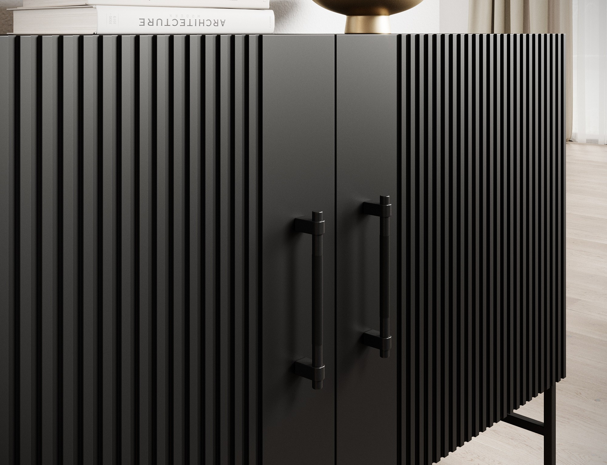 The dresser from the Raftt Collection is an excellent blend of modern design and functionality. Its solid construction is made from laminated particleboard, while the grooved fronts from foil-coated MDF give it a unique character, highlighting the industrial style of the furniture. The whole piece rests on black metal legs, powder-coated for stability and durability, while also adding a sense of lightness. Black aluminum handles complement the design, ensuring easy drawer and cabinet access. The option to mount it on the wall further enhances safety. This dresser fits perfectly into loft, industrial, and modern interiors, offering both practicality and design.