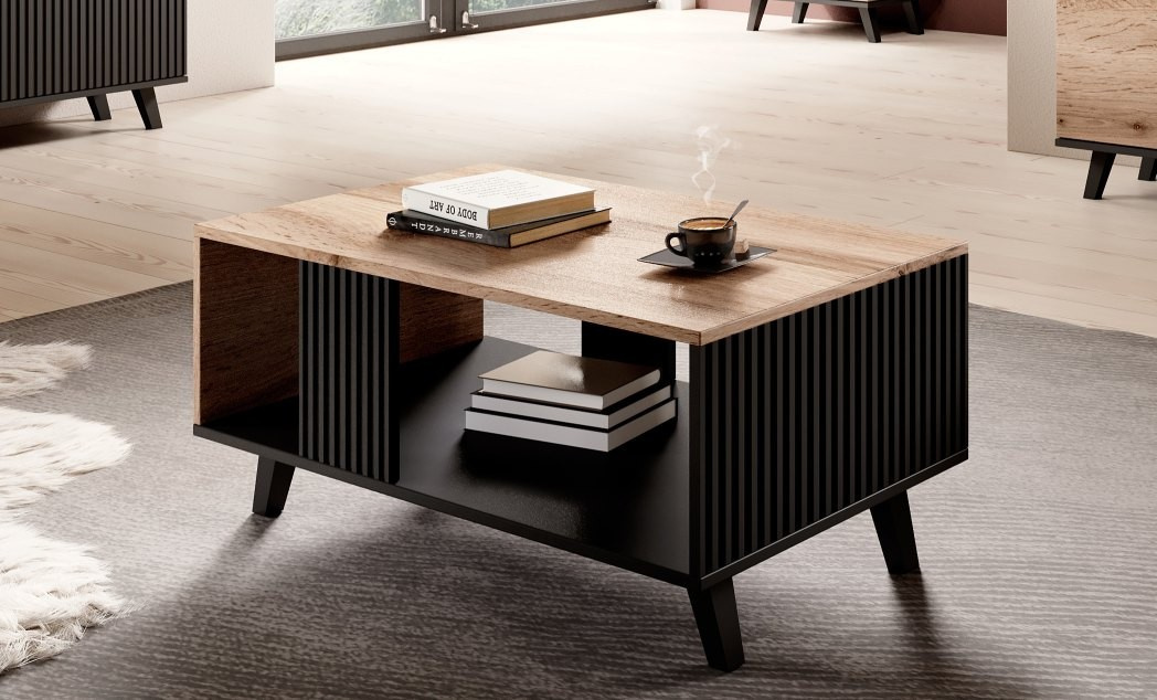 pad, méretek: 92/50/40 cm, anyag: furnérozott MDF / furnérozott bútorlap / polipropilén, szín: wotan tölgy - fekete
