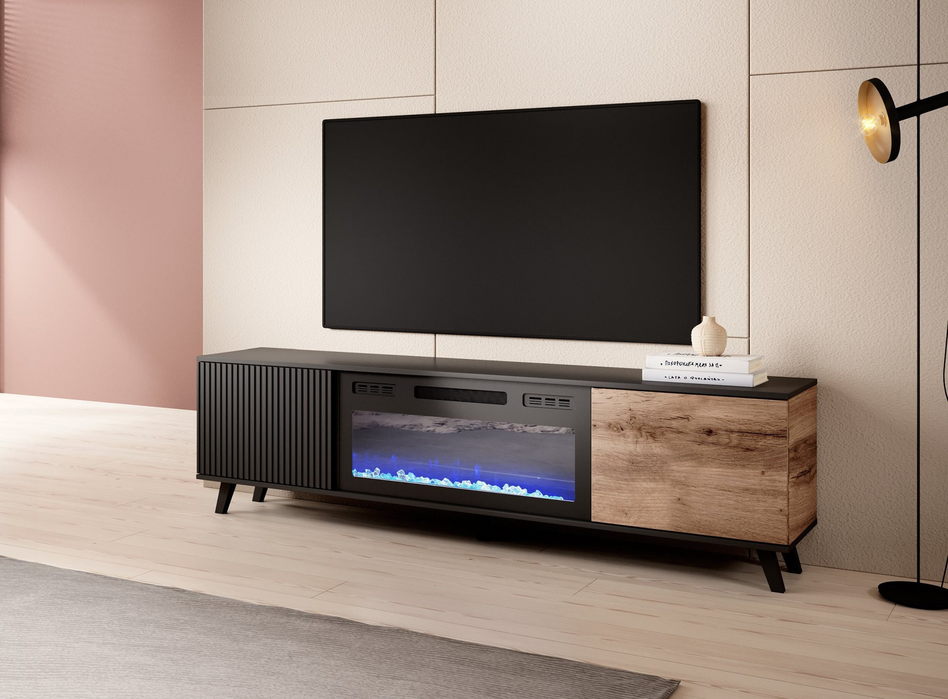 RANDOM RTV-K RTV 180 cm TV komód kandallóval, wotan tölgy/fekete