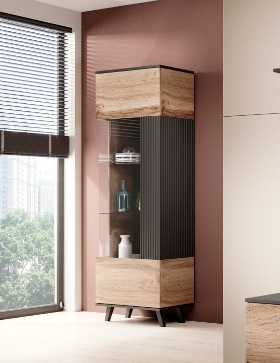 RANDOM W-1 vitrin, wotan tölgy/fekete