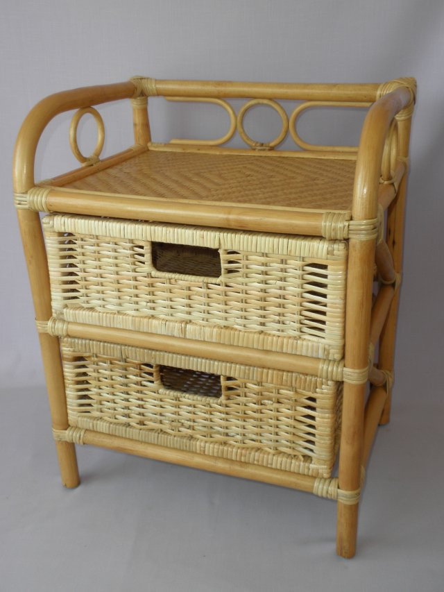 Ratanový nábytek -ratanová komoda 2 zásuvky. Konstrukce i výplet jsou z přírodního ratanu v medové barvě. Komoda má široké možnosti využití a je praktickým doplňkem do každé domáctnosti. | Barva ratanové konstrukce a výpletu je medová. Velikost komody je 45x36x53 cm