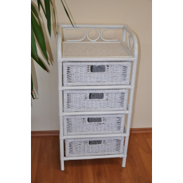 Ratanový nábytek -ratanová komoda 4 zásuvky. Konstrukce i výplet jsou z přírodního ratanu . Komoda má široké možnosti využití a je praktickým doplňkem do každé domáctnosti. | Barva ratanové konstrukce a výpletu je bílá. Velikost komody je 45x36x95 cm
